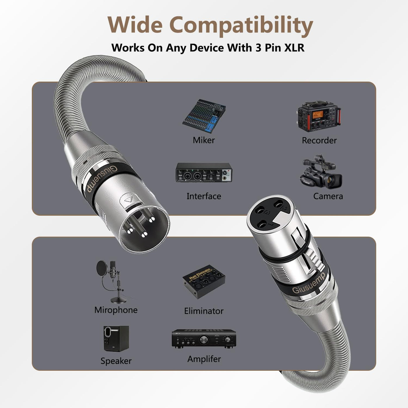 Giusuemp Xlr To Xlr Microphone Cable 3Ft, Premium Male To Female Xlr Cable, 3 Pin Balanced Shielded Mic Speaker Cable, Metal Spr
