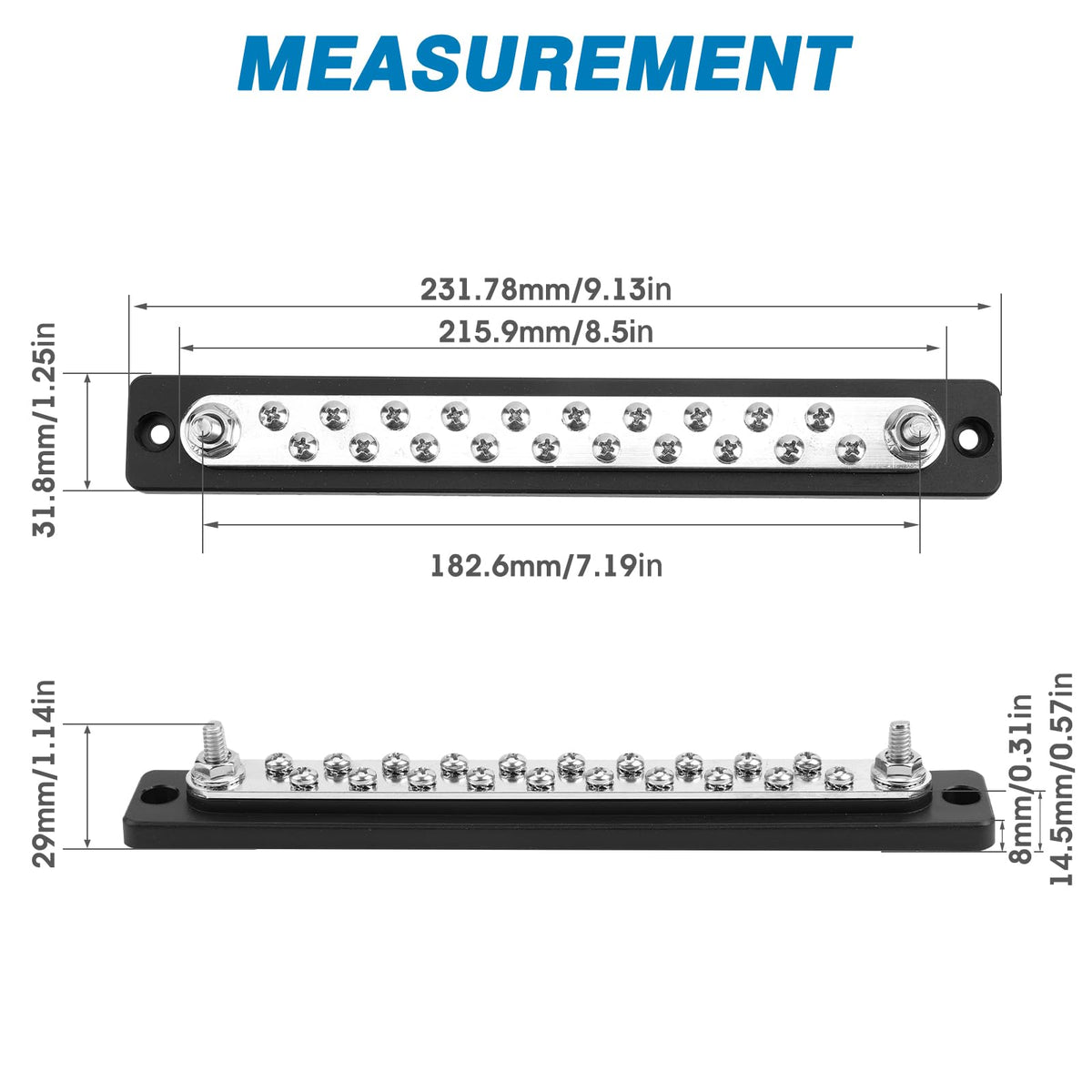 Gloso Common Bus Bar M6 Studs Power Distribution Block Marine Busbar Battery Terminal Distribution Block 150 Amp Rating 20P