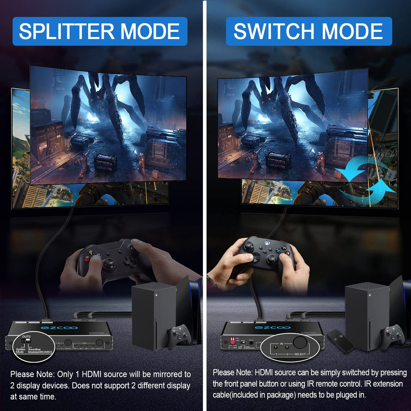 Hdmi 2.0 Splitter 4K 60Hz Arc Earc For Soundbar Hdmi Switch Bi Direction 1 In 2 Out Or 2 Input To 2 Output Spdif 5.1Ch Audio Ext