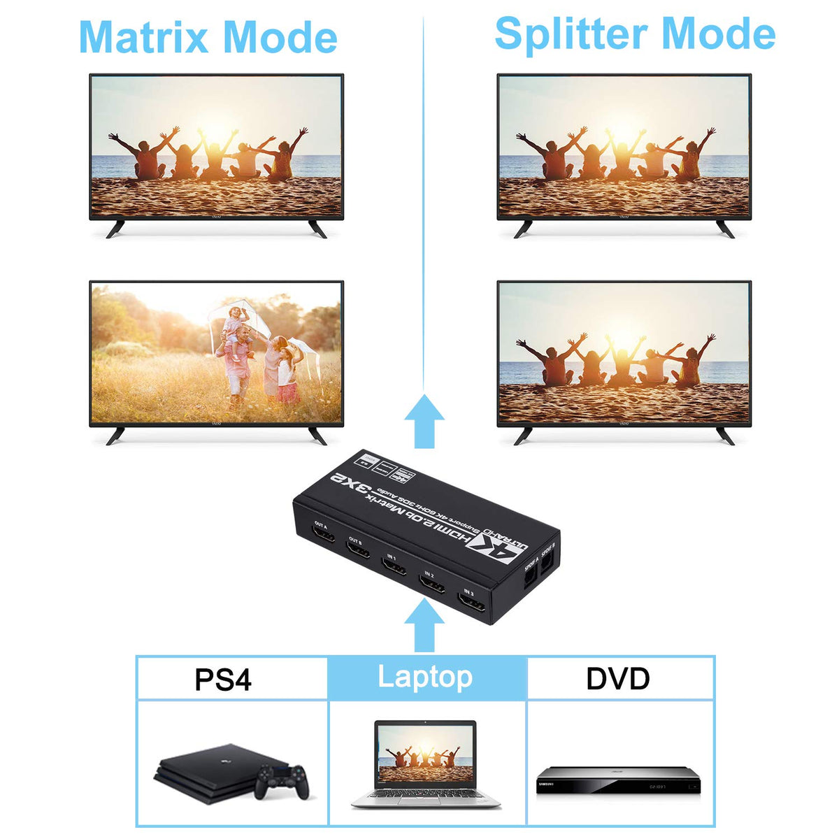 Hdmi Matrix 3X2, 4K Hdmi Matrix Switch 3 In 2 Out Switcher Splitter Box With Edid Extractor And Ir Remote Control, Support Ultra