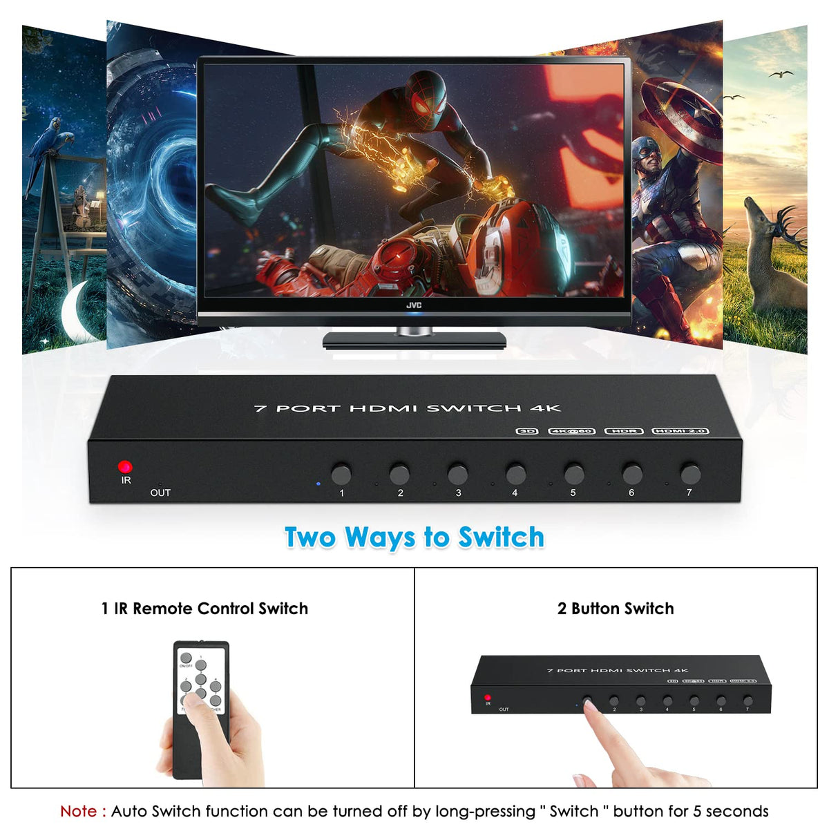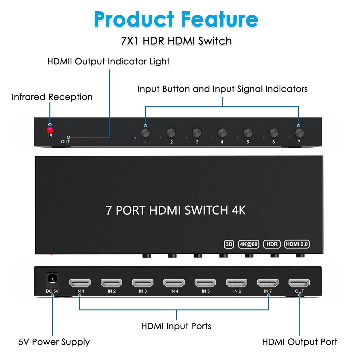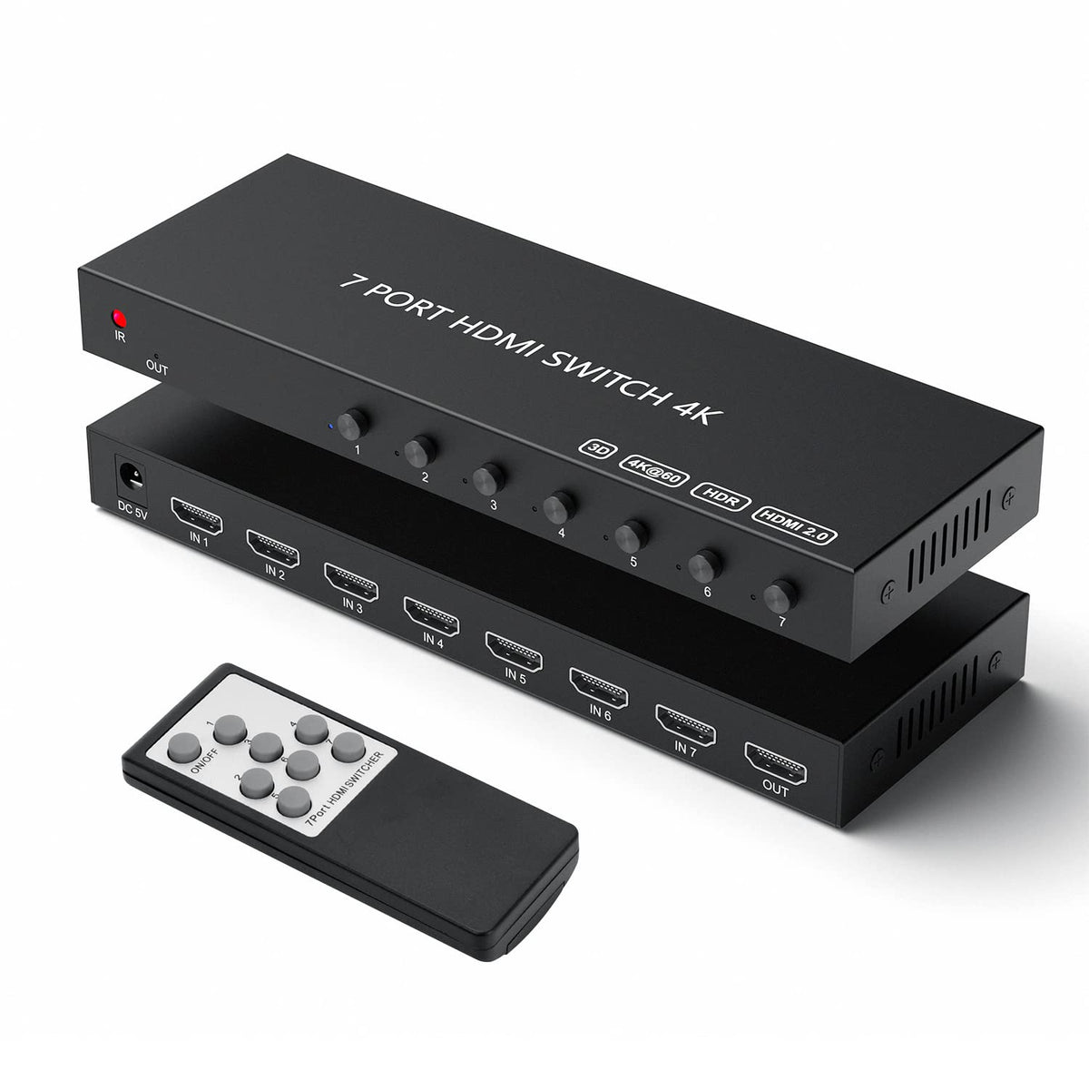 Hdmi Switch 7 In 1 Out,Semusgx Hdmi Switcher Box With Ir Remote Control,Hdmi2.0 Support 4K@60Hz Hdr, Hdcp, 3D, 1080P For Fire St