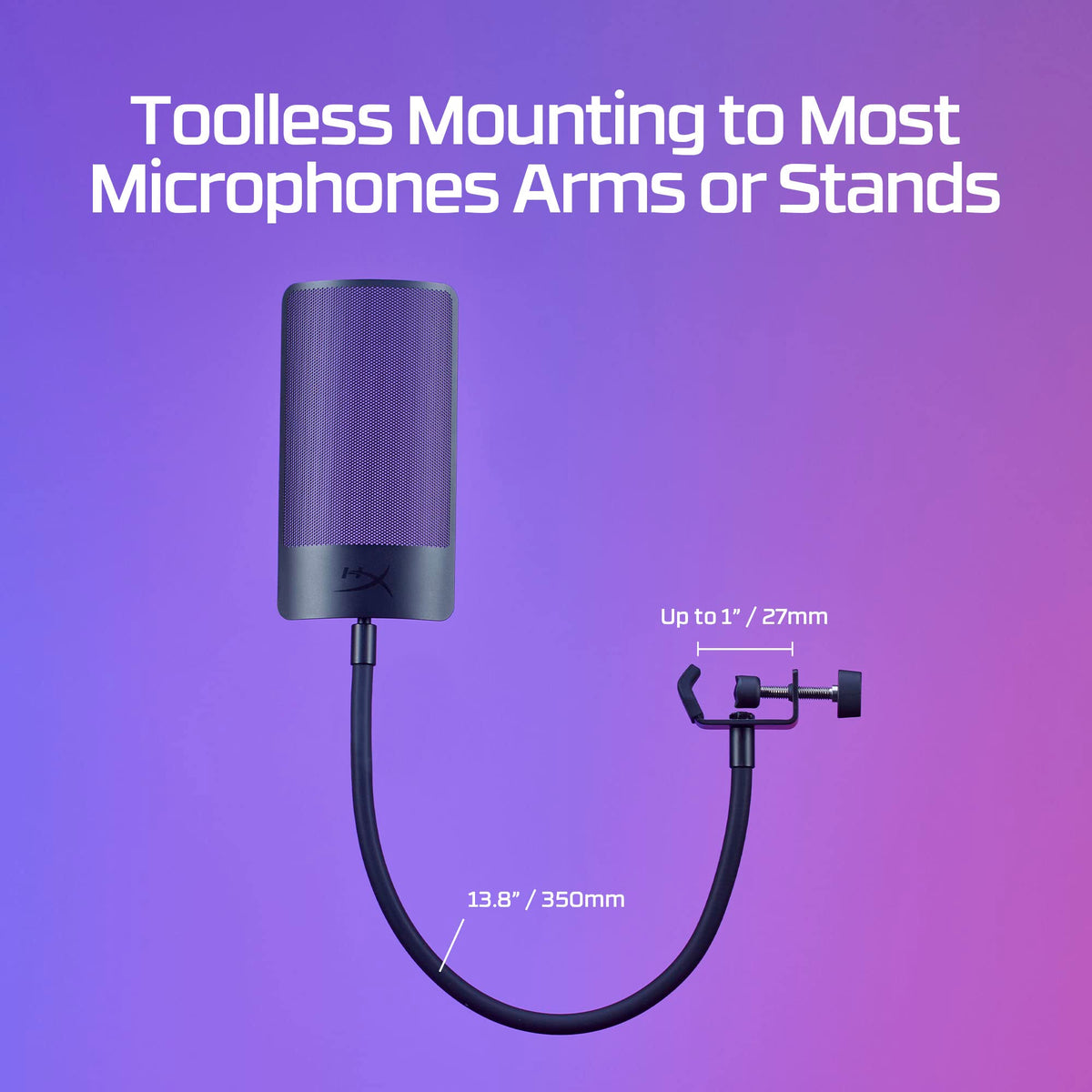 If Youre A Streamer, Content Creator, Or Aspiring Voiceover Artist, The Hyperx Shield Microphone Pop Filter Will Help You Record Clean, Pop-Free Audio . This Useful Microphone Accessory Can Help Filter Out Those Plosive Puffs Of Air That Result From P Sounds. It Features A Universal Clamp And A Flexible Silicone Gooseneck That Easily Attaches To Most Microphone Setups. For Hyperx Quadcast, Quadcast S, And Procast Owners, Its Even Easier, Simply Detach The Gooseneck, And Directly Attach The Filter To The Shock Mount.