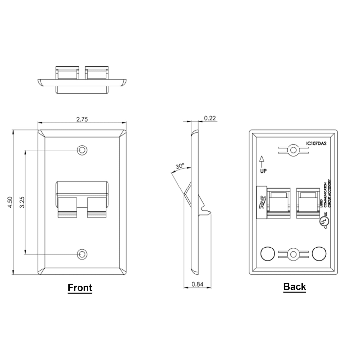 ICC Angled Faceplate with Two Angled Ports for EZ�/HD Style in Single Gang, White