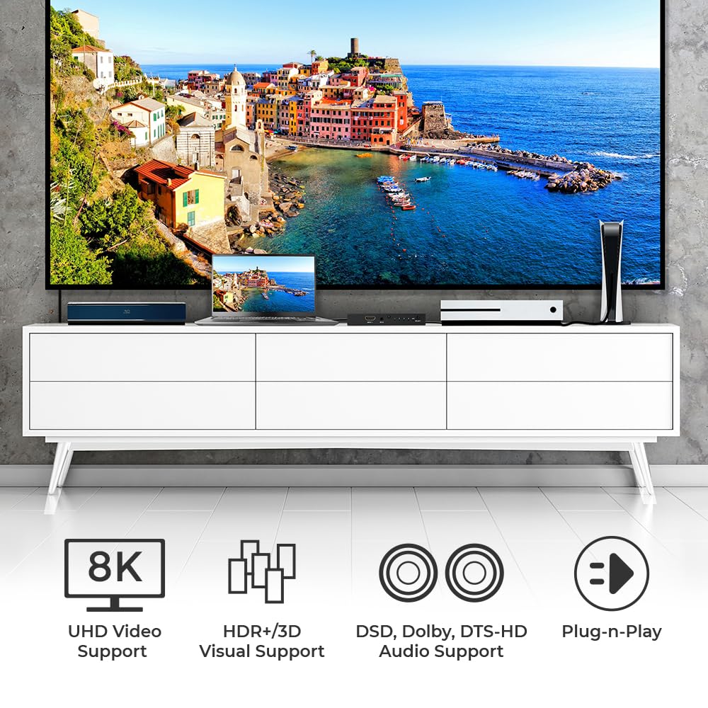 Connect Up To Four Hdmi Source Devices To One Hdmi Display With Iogears 4K 4-Port Hdmi Switch. For Easy Access And Convenience, This Switch Has One Hdmi Port On The Front Panel That Can Be Used To Connect Your Portable Devices, Such As Laptops, Tablets Or Digital Cameras. The Three Additional Hdmi Ports On The Back Provide Permanent Connections For Your Blu-Ray Players, Set-Top Boxes, Video Game Consoles And More. Switching Between Hdmi Source Devices Can Be Done Via The Front Panel Pushbuttons Or Ir Remote Control. Easy Identification Of Source Inputs Using The Front Panel Led Indicators For Each Source Device.