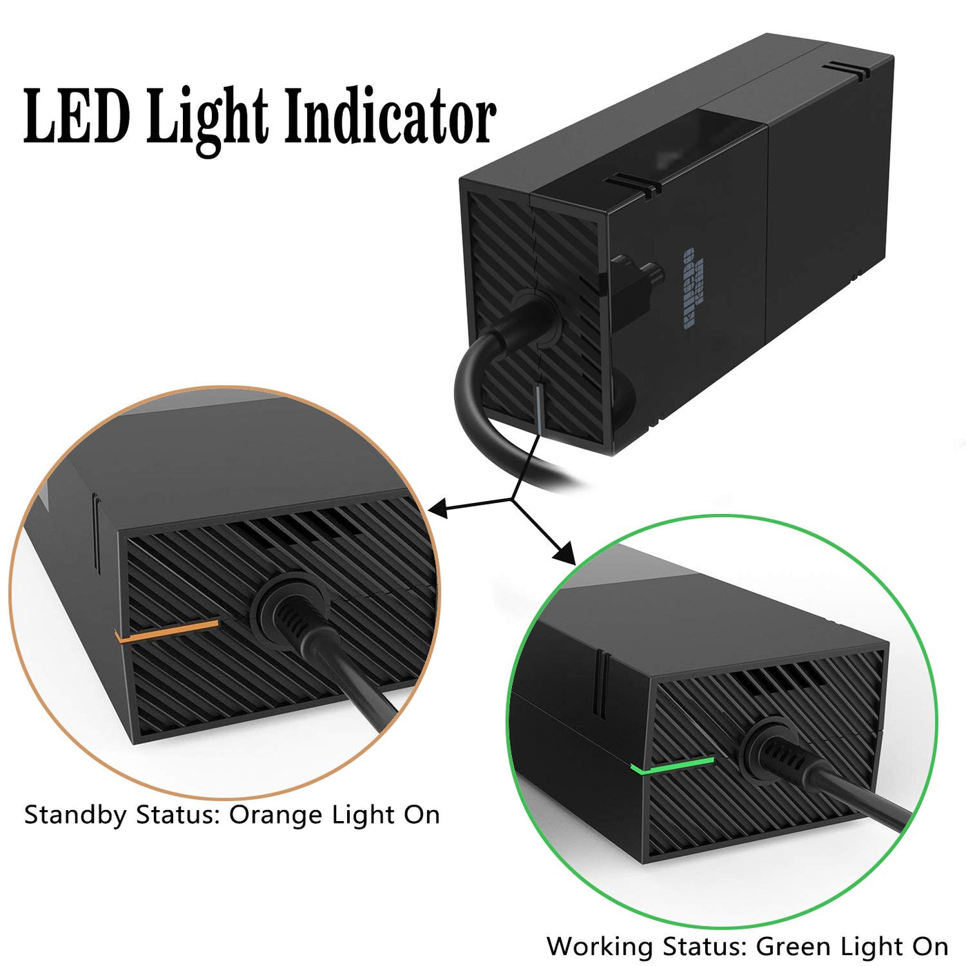 The Best Power Supply Replacement For Your Original Xbox One Power Brick This Xbox One Power Brick Is Your Best Choice To Replace Your Official Xbox One Power Supply. Specifications: Input: Ac 100-240V ~ 2.4A 47-63Hz Output: Dc 203W 12V--16.5A; 5Vsb--1A