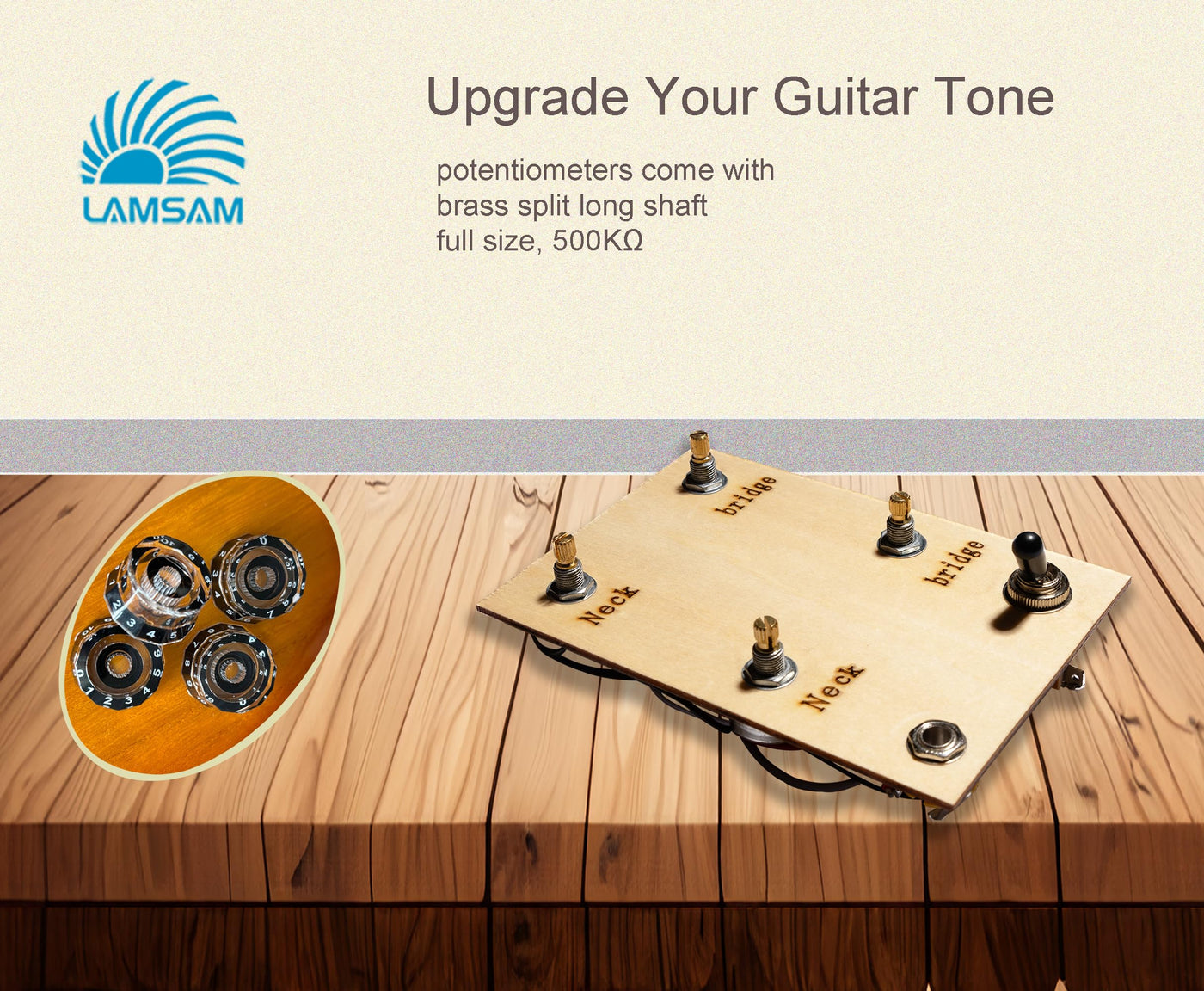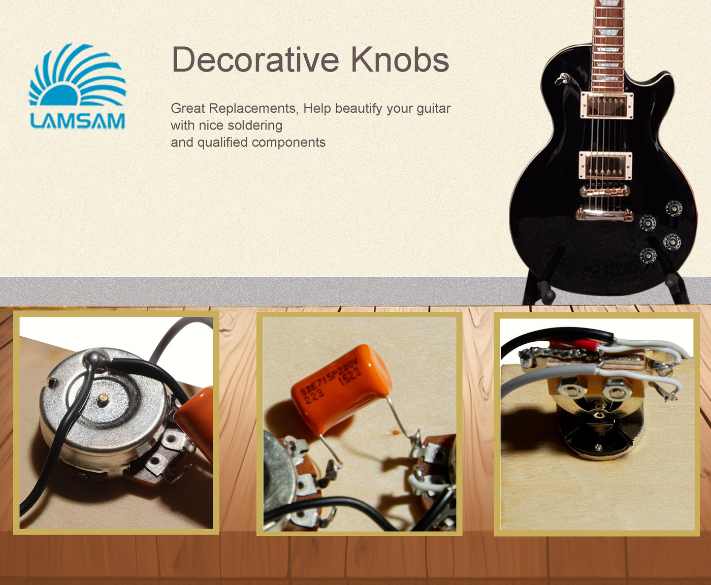 Widely Work - Prewired Wiring Harness As Modern Type, Fits Mostelectric Guitar With Hh Humbucker Pickups Set; And Other Guitar Types Depending On Your Guitars Top Thickness Save Your Time - A Prewired Kit, Drop Them In Your Guitars Control Cavity, You Only Need To Do Minimal Work Of Connecting The 3-Way Toggle Switch And Pickups Wires Upgrade Tone Of Your Guitar - Large 500Ko Long Brass Shaft Pots And Orange Capacitors Adding Extra Punch Or Smoothness To Your Tone Without Unwanted Noise Improve Your Guitars Control System - The 0.022Uf Orange Capacitor Deliver Wide Response Range And Durable Performance, Opens Up Your Sound What Will You Get - 1 X 3-Way Toggle Switch And Black Tip; 4 X 500Ko Pots And Their Control Knobs; 1 X 1/4 Mono Output Jack; 2 X 0.022Uf Orange Caps; 1 X Wiring Diagram