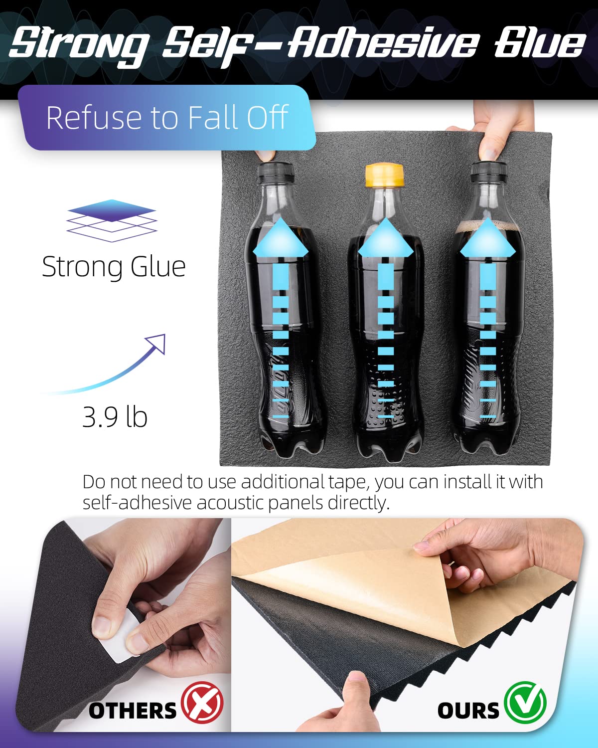 Leiyer Upgrade 12 Pack Sound Proof Foam Panels With Self Adhesive, 1'' X 12'' X 12'' Acoustic Panels Quick Recovery, Acoustic Fo