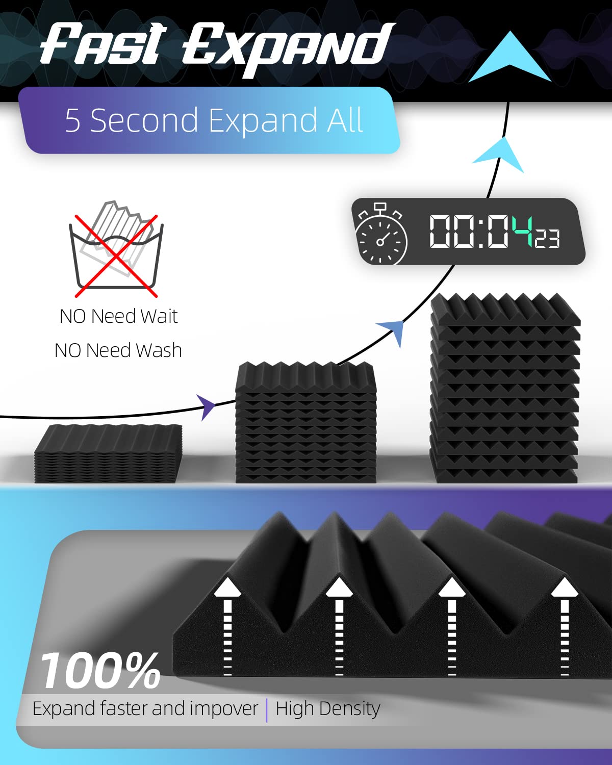 Leiyer Upgrade 36 Pack Sound Proof Foam Panels With Self Adhesive, 1'' X 12'' X 12'' Quick Recovery Acoustic Panels, Acoustic Fo