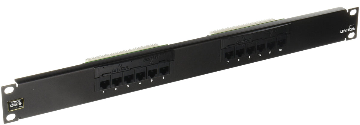 Leviton Extreme Cat 6+ Flat 110-Style Patch Panel, 1Ru, 12-Port, 69586-U12