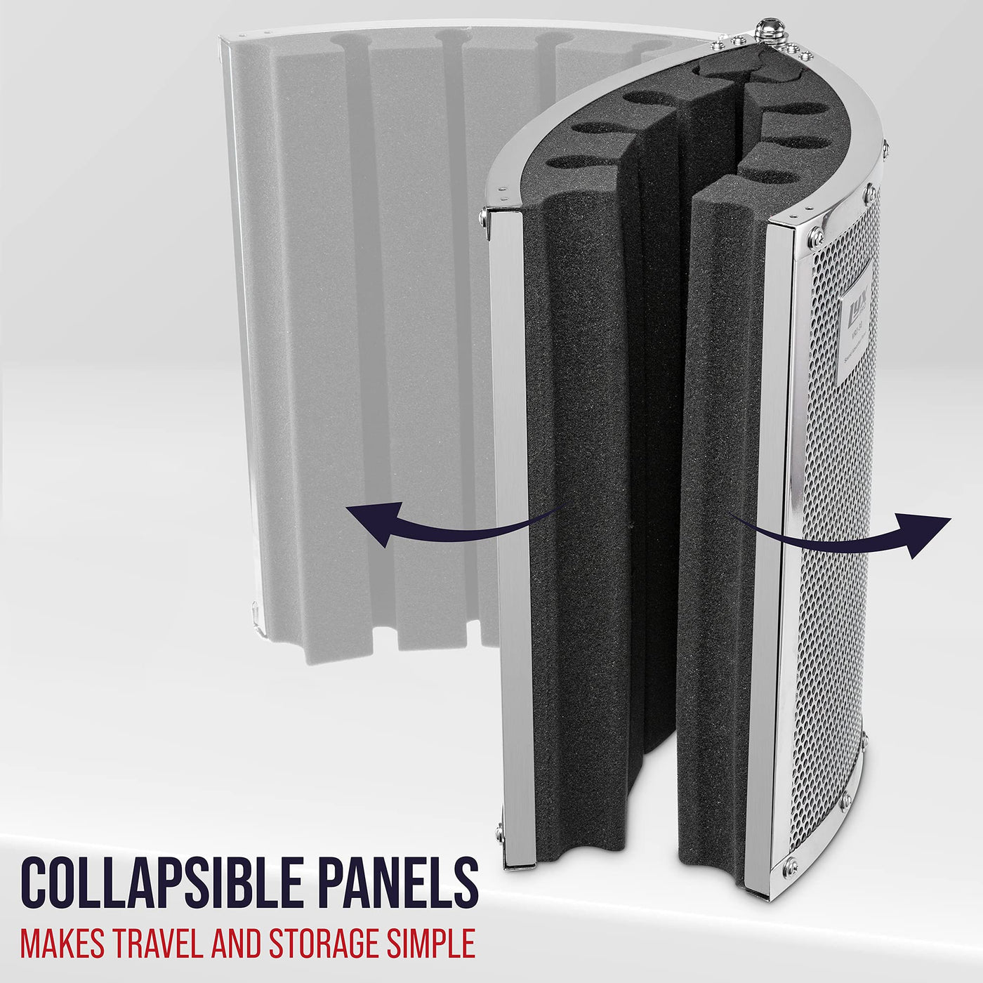 Make Anyplace Your Professional Recording Space.This Portable Sound Absorbing Vocal Recording Panel From Lyxpro Instantly Creates An Essential Microphone Booth With The Perfect Ambiance For All Your Professional Or Amateur Live Performance Recordings. The Panel Is Easy To Assemble And Use, And Is Perfect For Deflecting Noise Interference For Top-Notch Vocal Recording, Anywhere.Eliminates Noise Interferencedesigned By Acoustic Experts To Absorb And Deflect Ambient Noise That May Compromise The Accuracy Of Your Performance Capture, The Panel Effectively Blocks Sound From Air Conditioners, Audience Chatter, And Other Obstructions.Reduces Bouncebackthe Panel Is Constructed From Premium Aluminum And Lined With High-Quality Foam. This Delivers Structural Integrity Along With Appropriate Sound Diffusion So Your Recording Is Always Free Of Distortion Or Alteration Due To Surrounding Waves.Sets Up In Secondseasy-To-Follow Instructions Guide You Through The Truly Minimal Assembly Required.Setting Up The Vri-30 Entails No More Than Unfolding The Panels Hinged Sections, Hand-Tightening The Locks, And Positioning The Microphone To Your Preference.Remains Solid & Stablethe Recording Panel Mounts To Your Microphone Stand With A Convenient Adapter. The Included Mounting Hardware Set Adds Incredibly Versatility, Allowing You To Freely Maneuver Your Equipment Around The Recording Space As Needed.Travels Convenientlythe Clever Panel Design Allows For Easy Breakdown For Travel. To Take Your Perfect Recording Environment Anywhere, Take Apart The Sections And Pack Them Flat In Your Suitcase Or Musicians Bag. Reassembly Is Equally Painless.