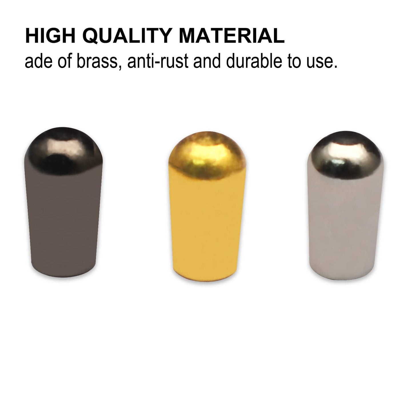 Description: 100% Brand New And High Quality No-Noise, High Quality 3 Way Switches For Your Guitar If Your Knobs Are Dirty, Dingy And Old, Or Just Want To Dress Up Your Guitar, The Pickup Switch Is Your Perfect Choice. Switch: Three-Way Switch Size: 5*3*1.7Cm Material: Metal Color:Gold Package Include: 1 X Metal 3 Way Guitar Toggle Switch,3 X Brass Tip Knob(Black/Chrome/Gold ).