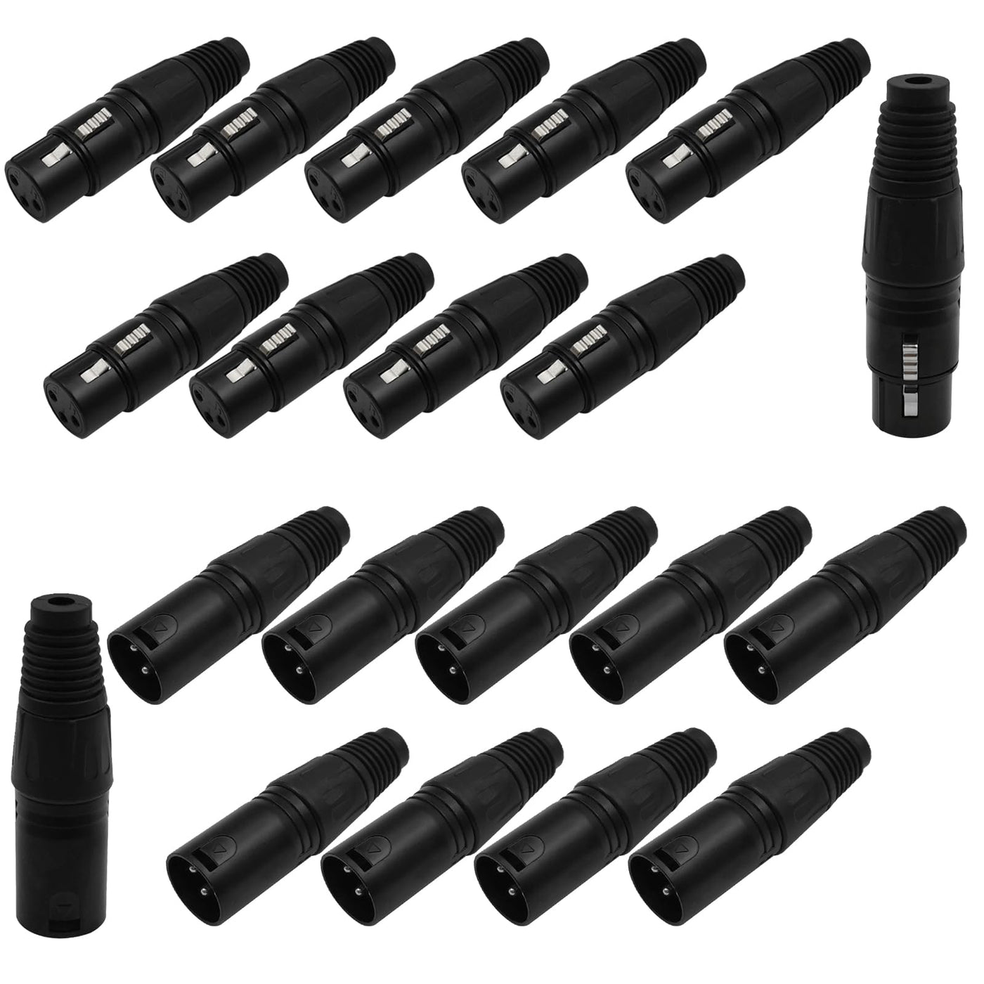 Q: What is included in the package for the MFBJXC connector set?A: The package includes 10 male XLR connectors and 10 female XLR connectors, providing you with a complete set for creating custom microphone cables or upgrading existing ones.