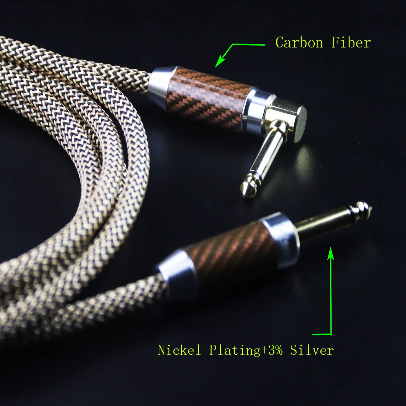 New Disign]:Unlike Any Other Guitar Cables On The Market,Mffmffm Guitar Cable Add Carbon Fiber Shell At The Trs Connectors, Make The Instrument Cable More Beautiful And Better Quality Noise-Free, High-Fidelity]:Mffmffm Guitar Cord Uses Copper Wire High Density Braid + Tin Foil + Semiconductor Material Triple Processing Shielding Layer,Can Better Reduce Noise And Protect Sound Quality Original Sound Transmission]:Instrument Guitar Cord With 20Awg Conductor Is Made Of Oxygen-Free-Copper(Ofc),Has Good Transmission Performance And Stable Performance Superior Durability]:Lightweight Natural Fiber Pet Braided Jacket Can Maximize Avoid Accidental Bending Caused By Guitar Wire Damage And Signal Loss, And Play A Role In Tensile And Dustproofstraight To Right Angle Design Can Protect The Guitar Sockets From Unnecessary Stress Damage,Which Can Well Increase The Durability Of Guitar Line Wide Compatible]:Mffmffm Electric Guitar Cable Suitable For Musical Instrument With Interface Of 635Mm Diameter,Ideal For Connecting An Guitarelectric Mandolinpro Audioamplifierspeakerequalizerkeyboard And So On Best Gift]:This Guitar Patch Cord Comes In An Elegant Cowhide Carton,Is The Best Gift For Beginnermenmusical Instrument Lover Lifetime Warranty]:Every Guitar Cord Is Backed By Superior Quality And Under Strict Quality Inspection Our Aim Is 100% Satisfied Customers Backed By A Mffmffm Lifetime Warranty,You Can Buy It Without Worry