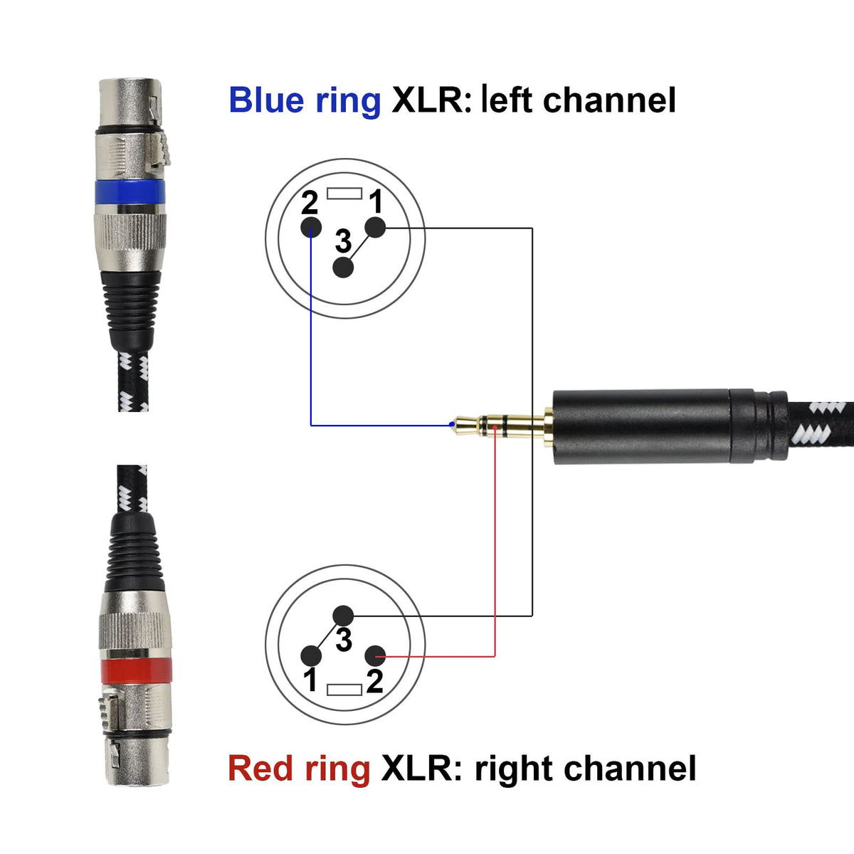 Dual Xlr Female Y Splitter To 3.5Mm 1/8 Mini Trs Headhone Jack Stereo Cable ?Features?: ? The Split Xlr Allows The Left And Right Signals To Be Controlled Separately. ? Cotton Braided, Heavy Duty. ? Ofc Shield, No Buzz, No Hum. ? Firm Solder Joints, Tight And Sturdy, Long Lifespan. ? Gold Plated Connector, Reduce Signal Distortion. ?Specifications?: ? Item: 2 Xlr Female To 1/8 Mini Trs Cable ? Length: 10 Feet / 3 Meters ? Trs Connector: Gold Plated, Size 3.5Mm 1/8 Inch ? Xlr Connector: Nickel Plated, 3 Pin Female, 2X ? Shield: Ofc Spiral, Reduce Influence Of Emi And Rfi ? Coating: Braided Cotton + Pvc ? Color: Black & White Notice 1: Please Note The Distance From The Splice To The Xlr End Is 50Cm/1.64Feet, Means The Distance Between Two Xlr End Is 3.2Feet As The Longest. So If You Buy These For Two Microphones, Please Make Sure The Distance Between Your Two Microphones Is Less Than 3 Feet. For Longer Connection, Please Find Two More Xlr Male To Female Extension Cable. ?Wide Application?: Mainly Used For Recorder, Livestream, Broadcast, Fm Transmitter, Mixers, Cameras, Etc. Popular Connections: ? Connect Mixer To Pc, Livestream Encoder, Dv Camera, Recorder. ? Connect Sound Board To Pc, Livestream Encoder, Video Camera, Recorder. ? Connect Two Microphones To Computer, Livestream Encoder, Dv Camera, Recorder. ? Input Two Separated Signal Like Guitar And Mic Into Mixer, Then To Pc, Livestream Encoder, Video Camera, Recorder. ?Customer Support?: We Offer 2 Years Warranty For This 2Xlr To Mini Trs Cable. If You Meet Any Issue When You Connect The Cable, Please Message Us Via Your Order Page, Our Customer Support Will Give Response Within 12 Hours. For Any Failure By Non-Human Factors Within The Warranty, We'Ll Arrange Replacement Or Fees Refund.