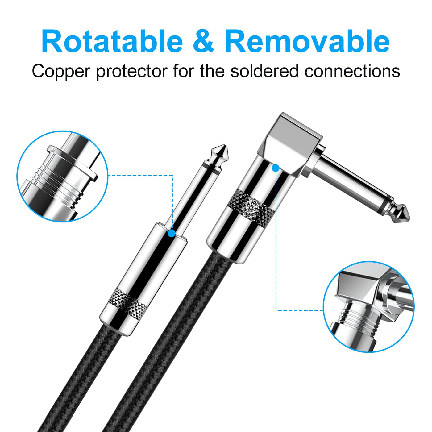 [Low Noise High Fidelity] New Bee Guitar Cord With 22Awg Oxygen-Free-Copper Center Conductors Provides Enhanced Signal Transfer, The Pvc Insulation Material And The High-Density Stranded Copper Double Shield Provide Noise Rejection For Quiet Operation | [Ideal For Choice] New Bee 1/4 Straight And Right Angle Metal Connectors, Ensures A Secure Connection In Any Instrument, Pedal, Or Amp Jack. L Shape Great Fro On Stage Guitar Stands. | [Wide Compatible] Suitable For Mixer, Power Amplifier, Microphone, Effector, Decoder, Equalizer, Electoronic Organ, Electric Guitar, Electric Bass And Other Electronic Equipments. Widely Used In The Installation Of Smart Home, Karaoke Speaker, Professional Stage Audio, Etc. | [Easy Disassemble] Making Incidental Repairs Quick And Easy! Very Nice, Flexible Cable! | [Dont Hesite To Order] 24 Hours Customer Services And Professional Technology Team Are Standing By.