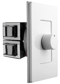 White plate included screw-less decor a style Impedance-Matching volume control for whole house audio systems and dedicated audio zones rated at 100 watts per channel with minimal bass roll-off Impedance-Matching feature stabilizes the OHM load so parallel connections of multiple volume controls can be installed without damaging the amplifier front-mounted adjustable jumpers allow easy adjustment when multiple pairs of speakers are connected to a single receiver or amplifier accepts up to 14-gauge wiring and fits in a standard gang box with a depth of 2.9&Rdquo; precision electronics provide low distortion and a ruler flat frequency response12-step linear rotary-style Knob for a wide range of listening volumes