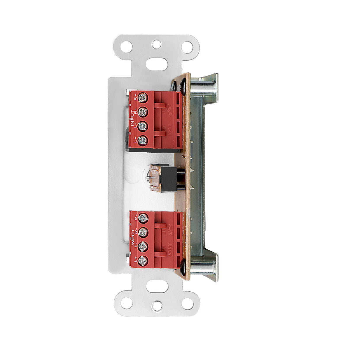 POWER: The AB12 is rated at 100 Watts with minimal bass roll-off. It allows the 100 watts to go to the speakers in either A or B, but not A and B at the same time. | SWITCH CONTROL: The easy push button control allows you to switch between two amplifiers and one pair of speakers, or two pairs of speakers and one amplifier with a push of a button. | MOUNTING: The AB12 selector has the dimensions of 1� W x 2 �� H x 1 �� D in order to fit most standard single-gang junction boxes with a 2.9� depth. | FREQUENCY: Wire a 14-16 gauge wire to get an optimal sound for your stereo system with the frequency response of 20Hz to 20KHz. | DESIGN: For dedicated audio zones, the d�cor plate installs easily into the wall and works with most systems. Removable and solderless terminals accept up to 14 gauge wiring and fits in a standard gang box.
