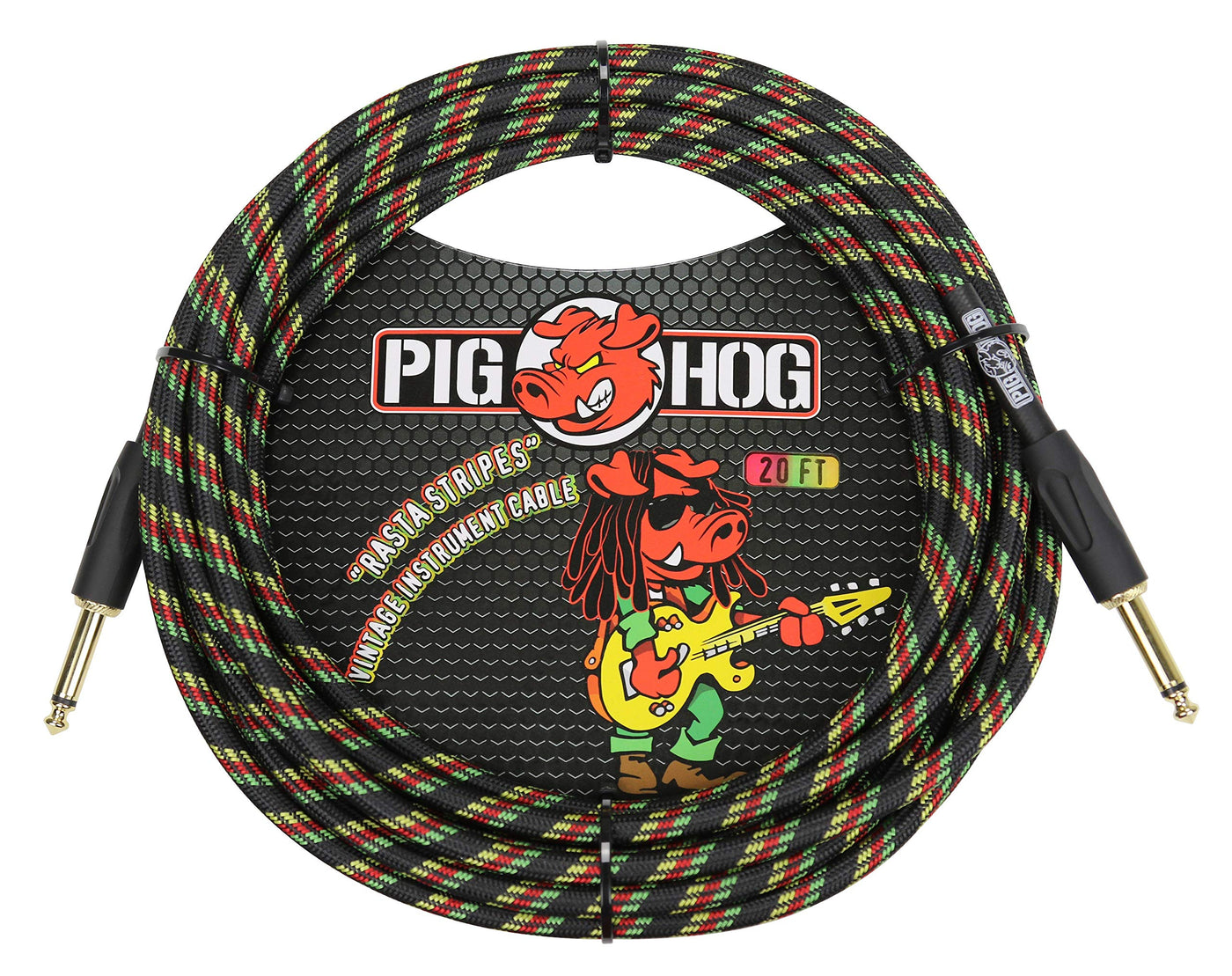 Pig Hog ''Rasta Stripes'' Woven Jacket Tour Grade Instrument Cable, 20-foot