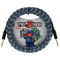 PIG HOG ''BLUE GRAFFITI'' INSTRUMENT CABLE, 20FT STRAIGHT .High performance instrument cable ., high quality, woven outer covering .Gold plated 1/4''-1/4'' straight connectors . guarantee .Pig Hog has always looked beyond the normal order, in favor of flavor and creativity. The Graffiti Series draws inspiration from spray-can catalyzed aerosol art. The cable patterns paint a visually colorful communication of controlled chaos. Like all Pig Hog cables, the Graffiti Series cables are precisely overbuilt to stand up to the most grueling tour conditions imaginable, while adding splashes of color to make your rig really pop! Our cables are designed to provide the highest quality performance with outstanding value. We understand your cables need to sound great and perform reliably, night after night, without costing you an arm or a leg! Thats why we use a high quality 7mm woven jacket that wont fray, and resists kinking and tangling. Our proprietary OFC conductor technology and robust shielding is designed to ensure your sound is crystal clear, without noise or interference, every time. Each cable is hand tested before shipment, and we back up our quality with a warranty so you can be sure your Pig Hog Cables will be an integral part of your rig for years to come.
