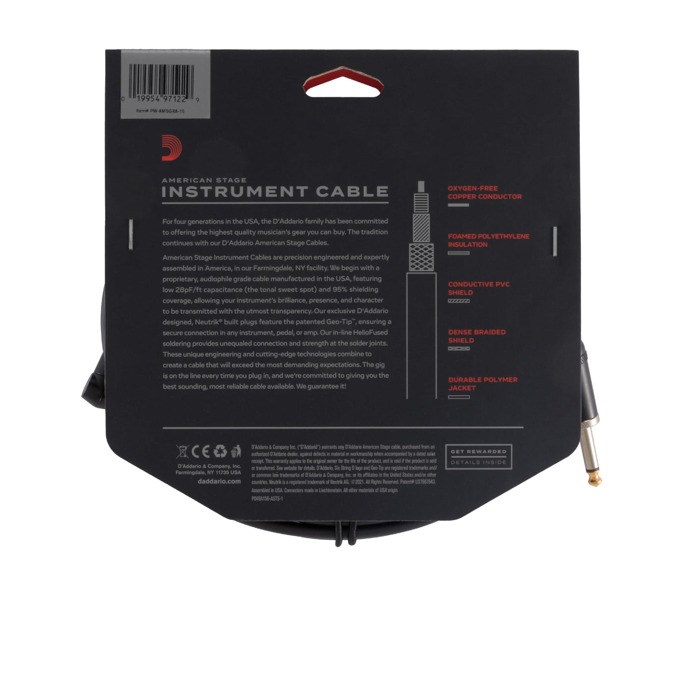 D'Addario American Stage Series Cables Are Designed To Reproduce The Natural Tones Of Your Instrument With Zero Interference. With Audiophile Quality Wire, Which Is Made In The Usa, The Low 28Pf/Ft. Capacitance Is The Sweet-Spot For Uncolored Tone And The 22Awg Oxygen-Free Copper Conductor Provides Exceptional Signal Transfer. Full Shielding Coverage Comes From Using 95% Tinned Copper Braiding, Eliminating Handling Noise And Rejecting Interference. American Stage Cables Also Feature D'Addario Designed Neutrik Made Connectors Featuring The Patented Geo-Tip. The Geo-Tip Allows For A More Secure Connection In Guitars, Pedals And Amps Over Ordinary Connectors. Using Only The Finest Materials, Custom Designs And Precision Usa Manufacturing Methods, American Stage Delivers A Professional Performance Cable. The Result Is Pure. American Stage Cables Are Built To Ensure That Your Tone Comes Through Exactly The Way You Want It.