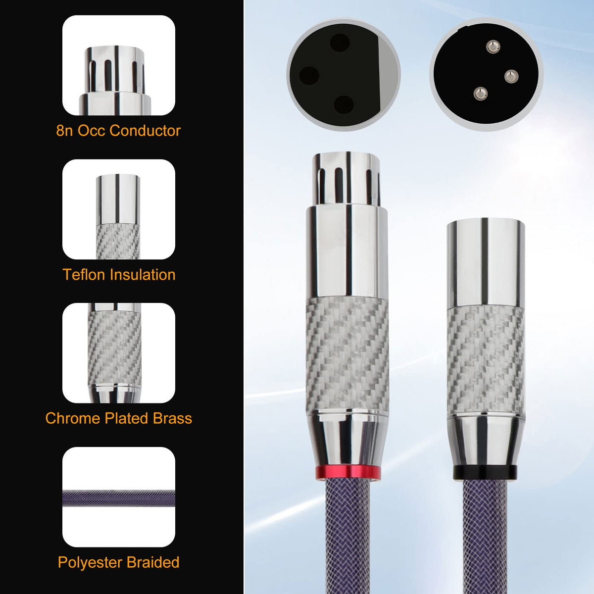 2Pack Audiophile 8N Occ Pure Copper Xlr Hifi Microphone Cable, Fully Balanced 18Awg 3 Pin Patch Cable, Carbon Fiber Rhodium Plated Audio Interconnect Mic Cord Rhodium-Plated Xlr Socket Adapter Could Eliminate Signal Loss And Static Noise, Provide Durability And Improve The Signal Transmission, And Blocks Any Interference Which Prevents The Loss Of Sound Quality Heavy Duty Flexible Insulation Material, Made By Environment-Friendly Material, Despite Multiple Layers Of Shielding And Insulation Put In Place For Maximum Noise Isolation Ideal For Stereo Microphone Cable, Amplifier, Recording Equipment, Monitor Speakers, Audio Interfaces Plug Length: *66Mmmale *69Mmfemale Material: *Cable Conductor Material: 8N Occ Pure Copper *Plug Pin Material: Pure Copper *Plug Surface Process: Rhodium Plating 3Pin Xlr Plug: *Pin #1: - Negative (Grounded) *Pin #2: + Positive *Pin #3: - Negative (Grounded) Package Included: 2 X Audiophile 8N Occ Carbon Fiber Rhodium Plated Microphone Cord