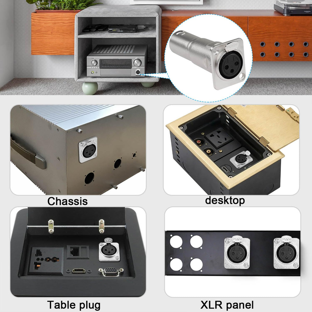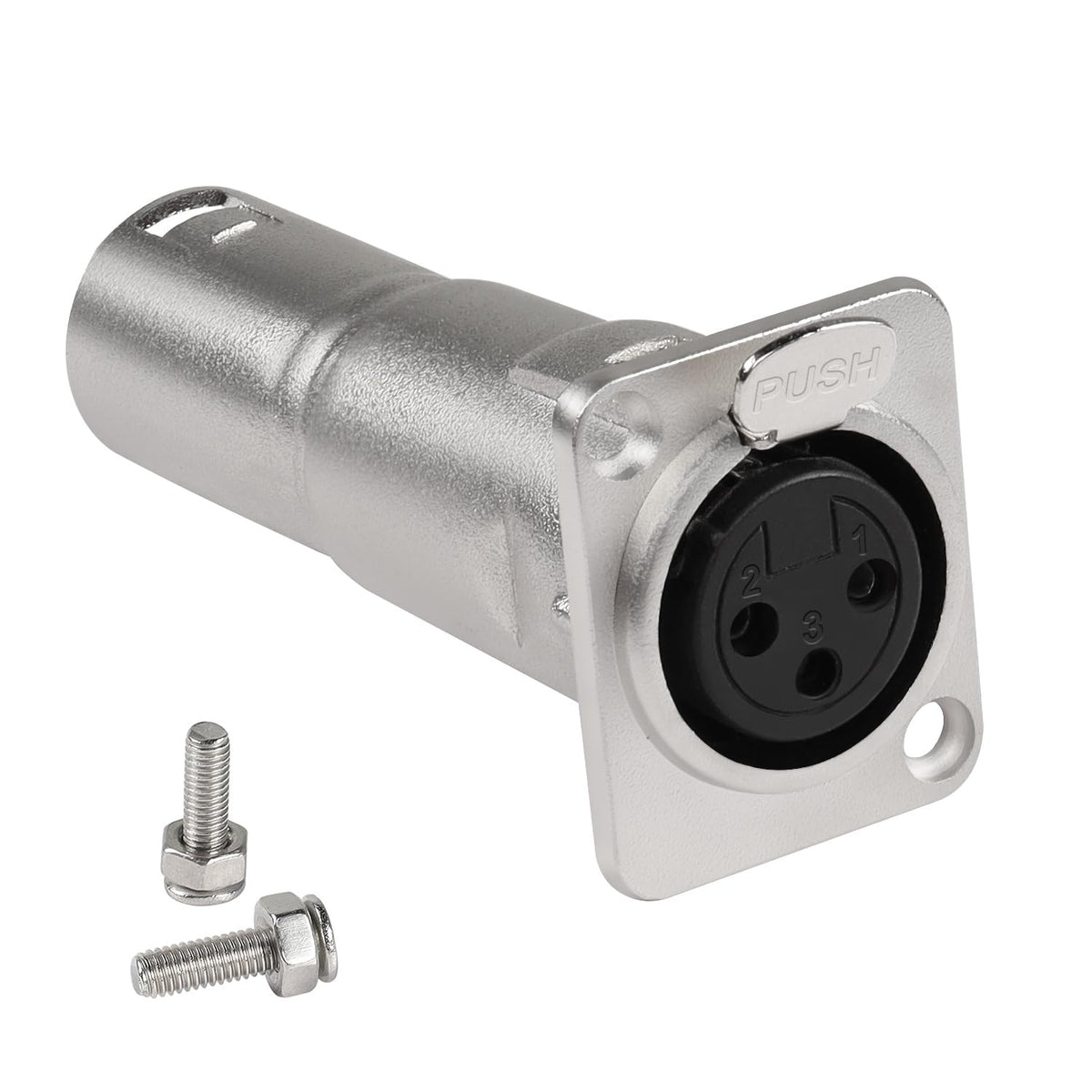 Q: How do I install the XLR panel mount connector?A: The installation process is straightforward; the adapter can be mounted on equipment racks, panels, walls, or desktops using the included M3 screws and nuts for a secure connection.