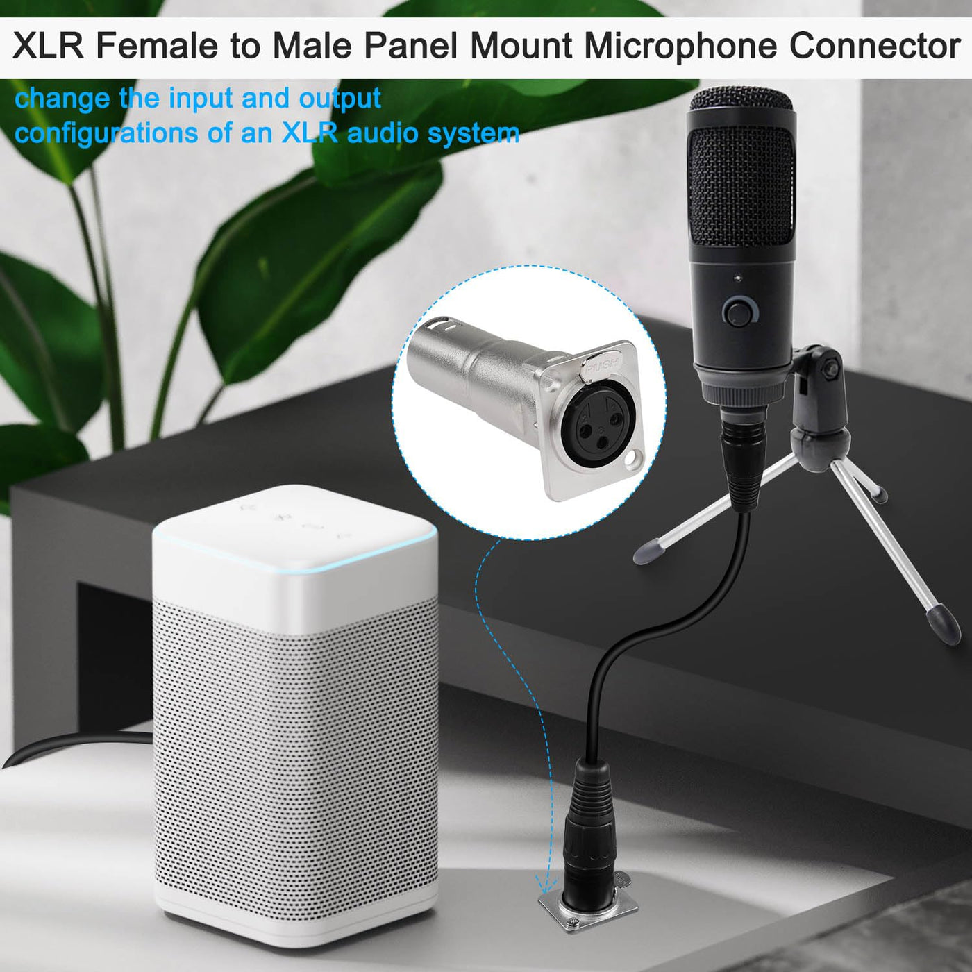 Q: What is the purpose of the QIANRENON XLR Female to Male Panel Mount Microphone Connector?A: The QIANRENON XLR Female to Male Panel Mount Microphone Connector is designed to change the input and output configuration of an XLR audio system, providing a stable audio transmission environment for professional audio applications.