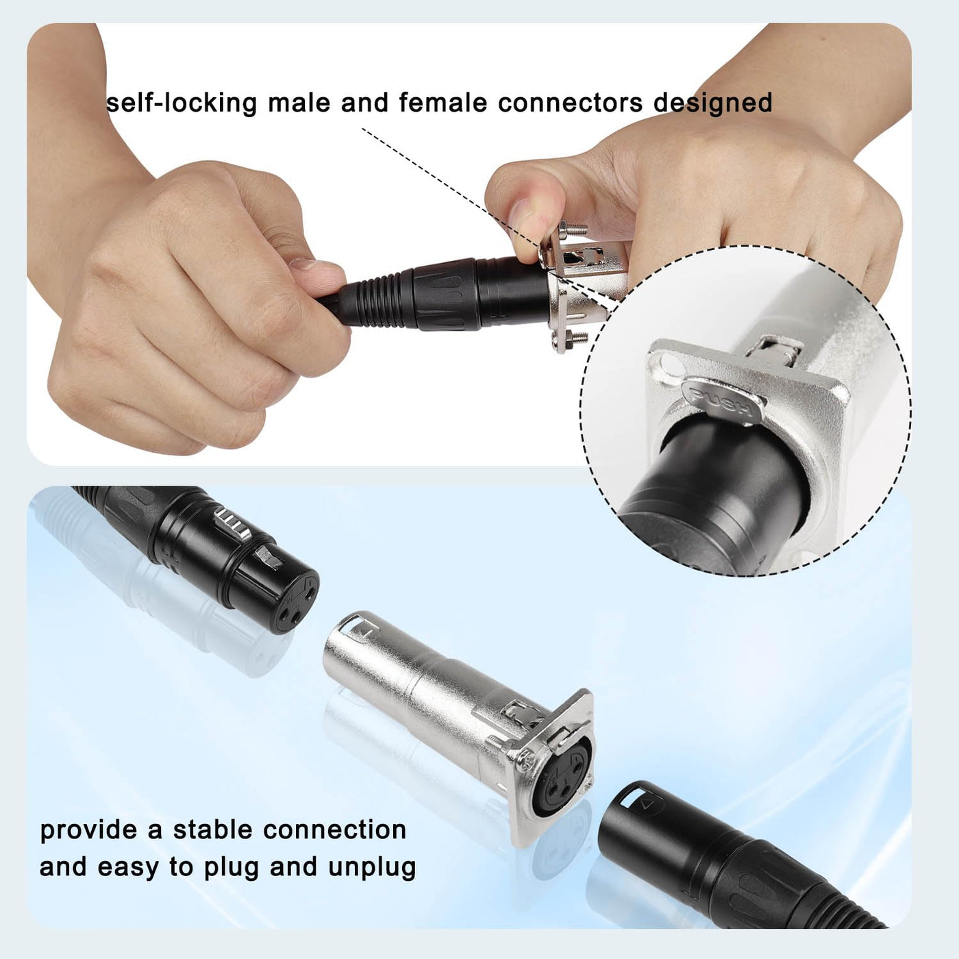 Q: What type of devices can I connect using this XLR adapter?A: This XLR adapter is compatible with various audio devices, including microphones, mixing consoles, and stage lighting equipment, making it ideal for use in music studios and live sound reinforcement systems.
