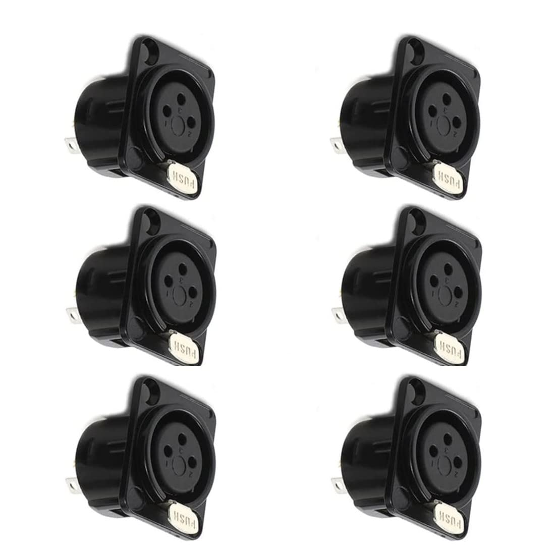 Package Content : Xlr Panel Mount Socket 6Pcs Xlr 3 Pin Female 3 Terminals Pcb Panel Mount Socket For Pro Audio Device. Total Size : 31 X 26 X 21Mm / 1.2'' X 1.1'' X 0.83''(L*W*H) Main Material : Plastic, Metal,Black Metal Housing