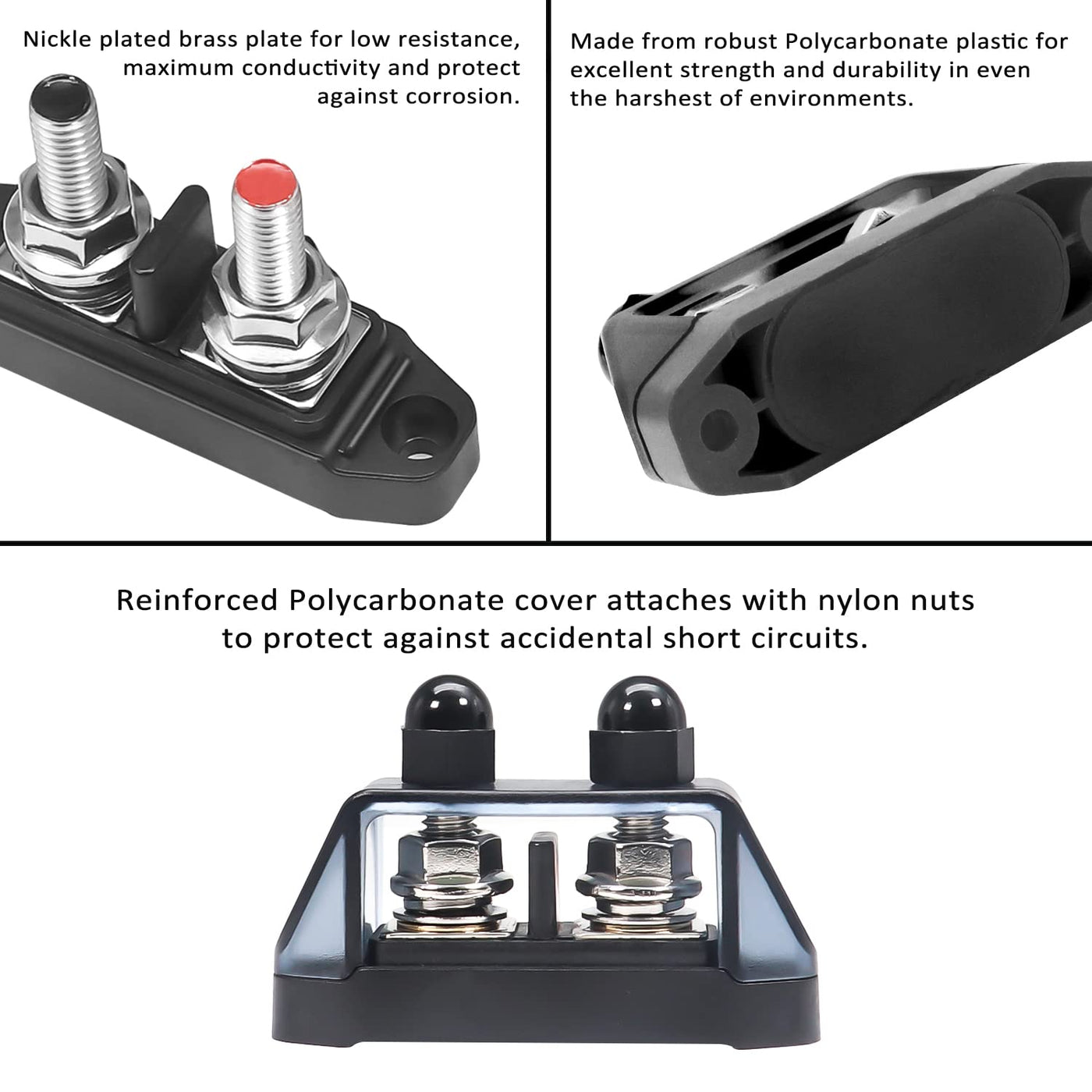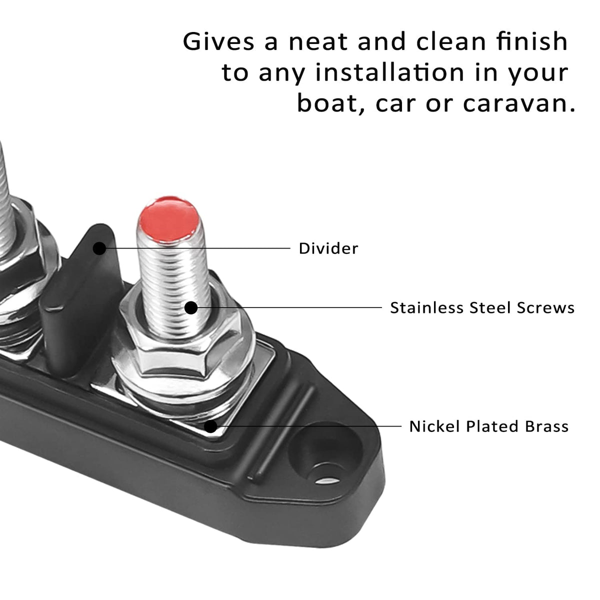 Two 5/16'' Stainless Steel Studs With Divider For Positive And Negative Connections. Comes With 2 X 4Awg & 2 X 8Awg 5/16 Ring Terminals, And Stainless Steel Screws.