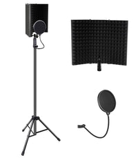 Recording Microphone Stand Isolation Shield With Heavy Tripod Stand, Professional Recording Studio Podcast Equipment Kit With Po