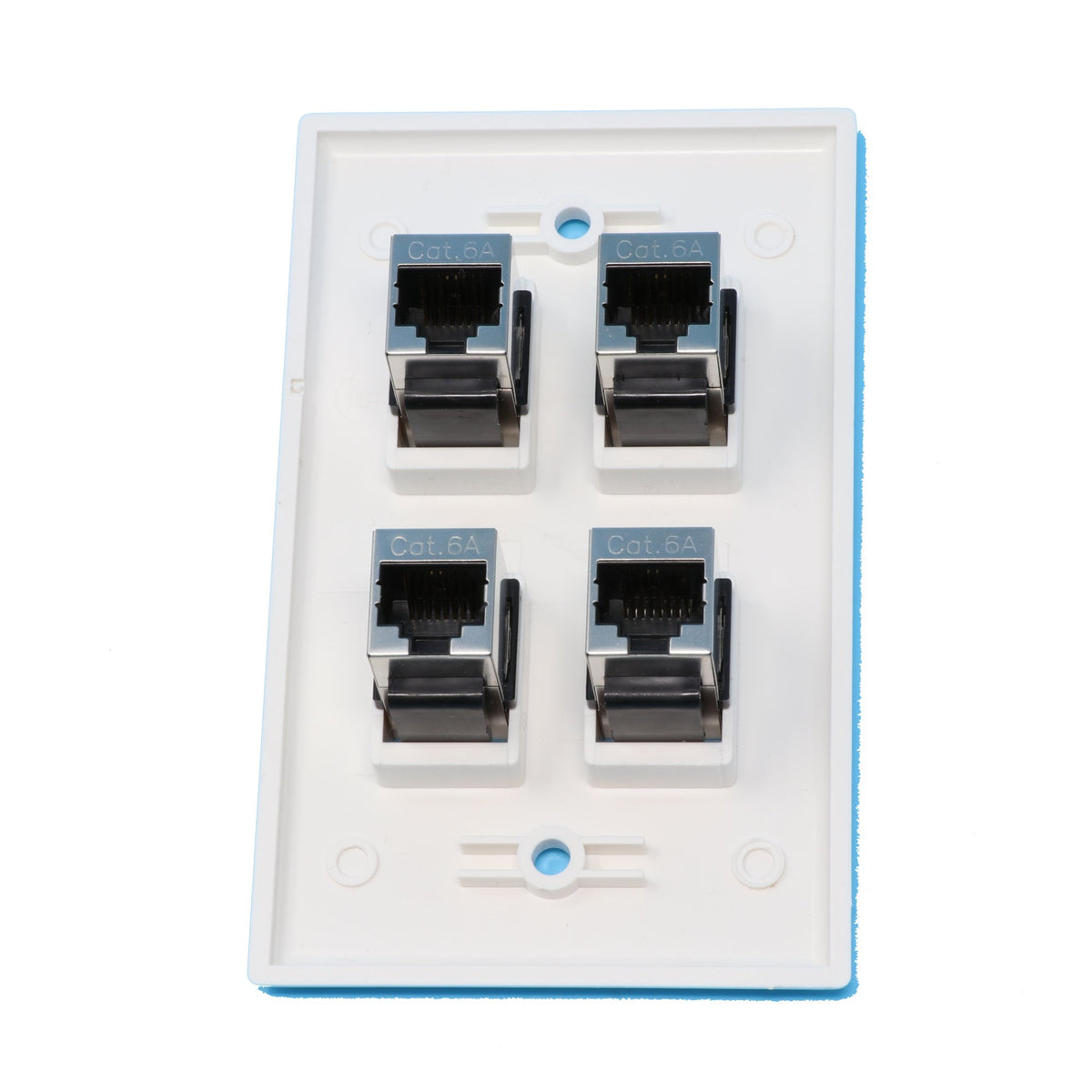 Riteav Cat 6A 4 Port Shielded Cat6A Wall Plate 1 Gang White