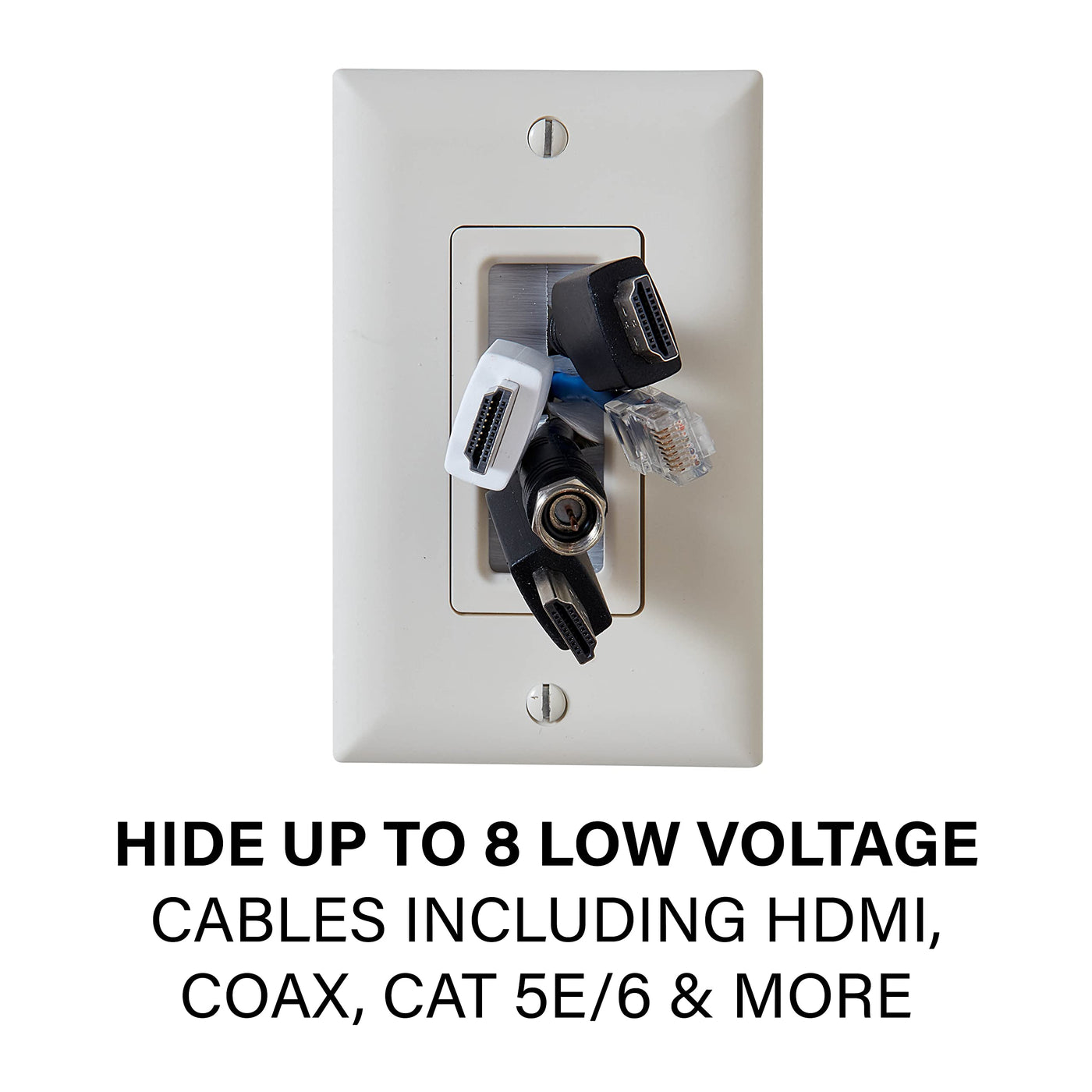 The In-Wall Cable Management Kit Creates A Seamless Home Theater Experience By Hiding Cables Behind Your Wall With Two Brush Plates. Provide Clean Cable Access From Any Wall To Your Source With This Pre-Configured Cable Access Strap. Hide Up To 8 Low Voltage Cables Behind Your Tv Including Hdmi, Coax, Cat5E/6 And More.