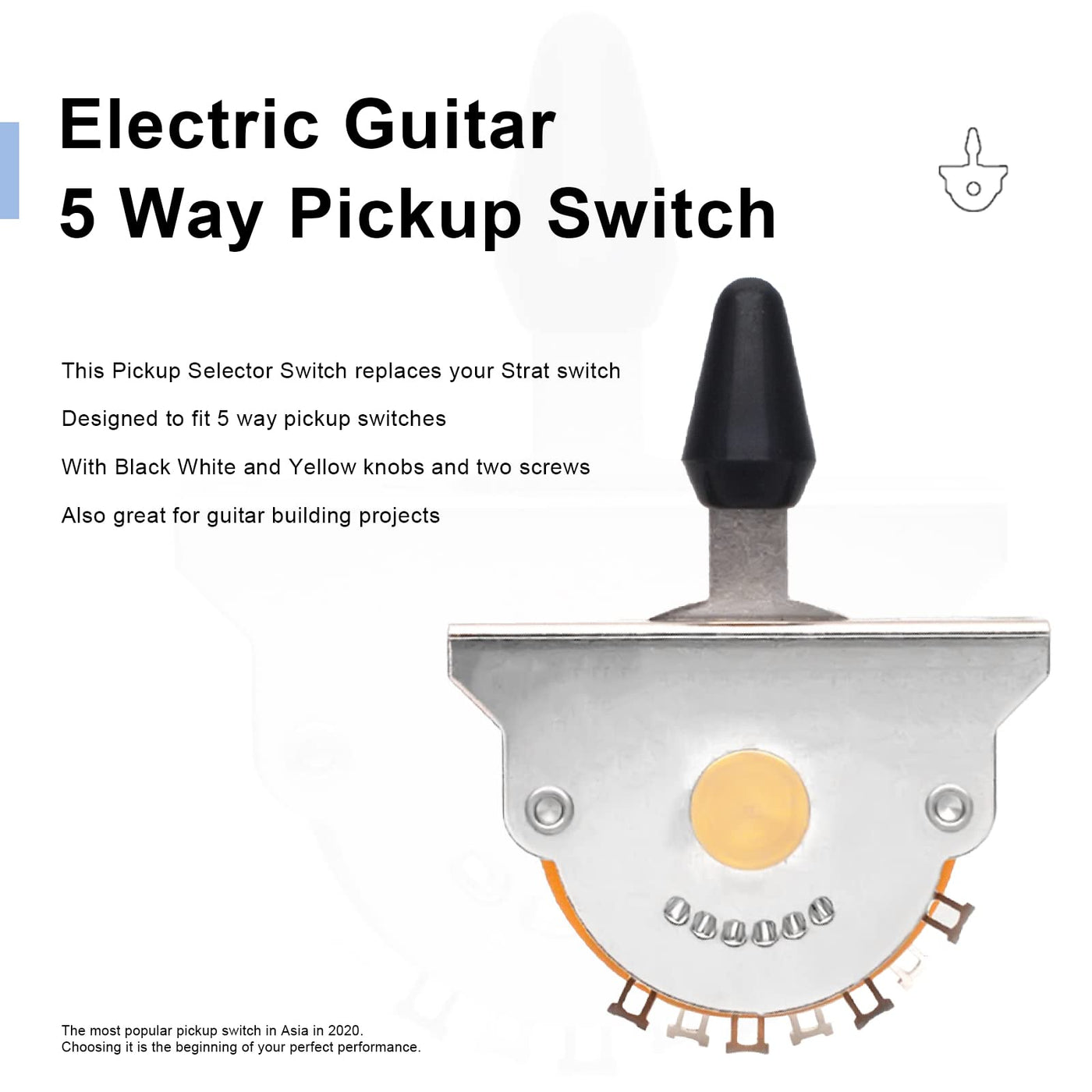 Saphue Electric Guitar 3/4/5 Way Pickup Selector Switch With Black/White/Yellow Knob (5 Way Switch)