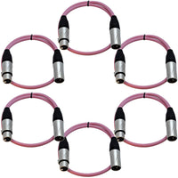 Seismic Audio - 6 Pack Of 2 Foot Pink Xlr Patch Cables - 3 Pin Male To Female Microphone Cords - 2'
