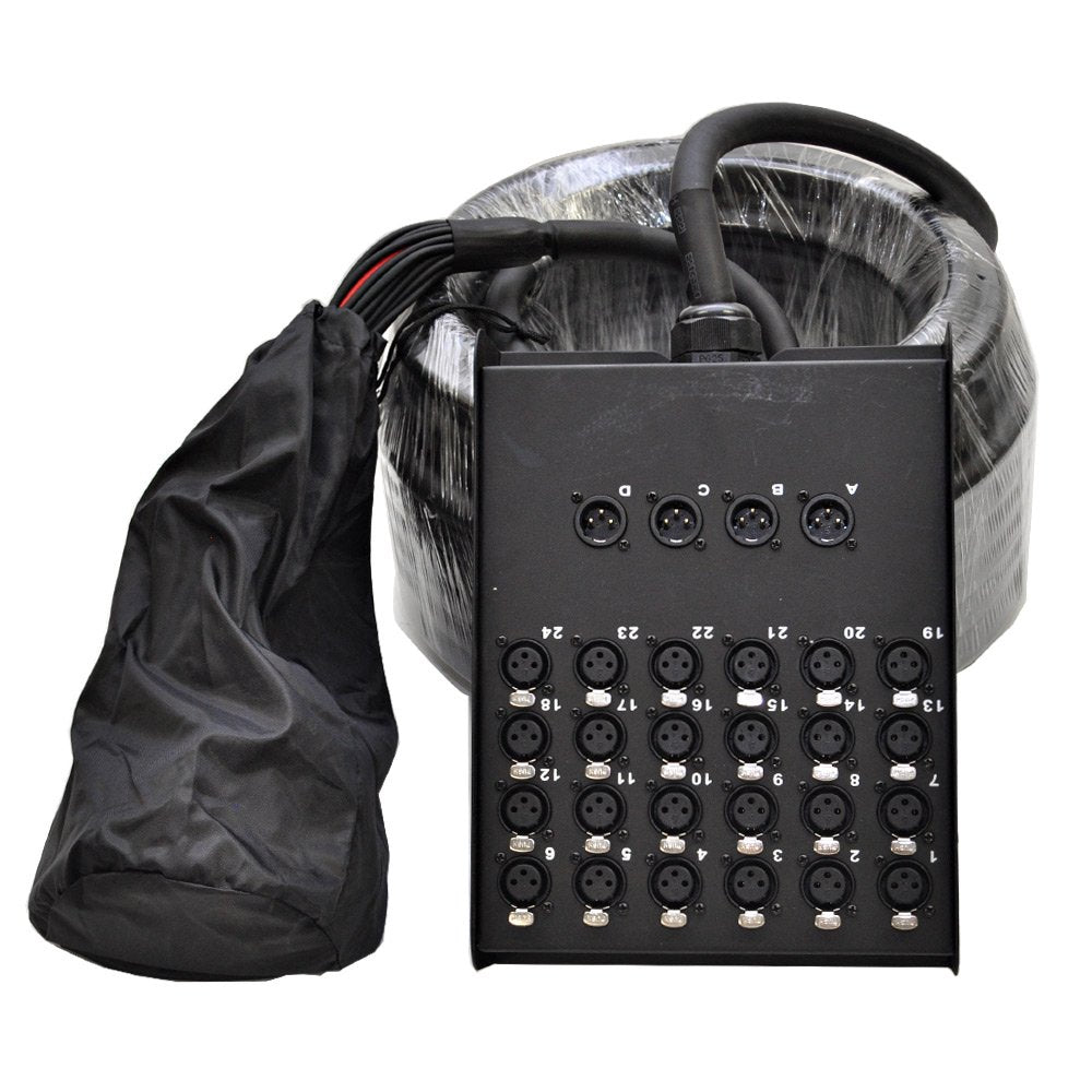 24 Channel Xlr Low Profile Circuit Board Snake Cable -100 Feet - Model #: Sacb-24X4X100, Sends: 24 Xlr Male Connectors, Returns: 4 Xlr Female Connectors, Length: 100 Feet, Weight: 33 Lbs., Condition: New, Stage Box Is Numerically Labeled, Stage Box Dimensions: 10.75 L X 8'' W X 2.75'' D, Circuit Board Technology Within The Box, Fantail Is Color Coded And Numerically Labeled, 100% Individually Shielded Pairs, 25 Gauge Heavy Duty Conductors, Heavy Duty Steel Stage Box With Handle, High Quality Xlr Connectors At Both Ends, One Year Warranty. Whether You Have A Permanent Installation Or Mobile, This Snake Cable Is Rugged Enough To Handle Whatever You Throw At It - Road Ready And Built To Last. With Circuit Board Technology You Are Insuring A Solid Connection With Your Connectors. The Quality Of Your Sound Can Only Be As Good As The Connections Between The Stage And The Mixer And With This Snake Cable, Each Pair Of Heavy Duty Conductors Is Individually Shielded, Yielding Crystal Clear Sound While Rejecting Extraneous Noise. Xlr Connectors On The Returns Make This Snake Cable Fit Right In With Professional Power Amps And Mixing Consoles Without The Need For Converters Or Couplers. Awesome Quality Snake Cables Are Very Hard To Find, Especially At A Decent Price. The Seismic Audio Brand Was Designed To Make The Professional Musician, As Well As The Musician Low On Cash, Sound Great. With Your Purchase, You Will Receive One Audio Snake Cable Pictured And Described Above. So, Put It In Your Cart Today And Get Ready For Years Of Trouble-Free, Crystal Clear Sound!