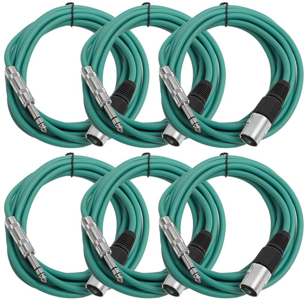 Seismic Audio - Satrxl-M10-6 Pack Of Green 10 Xlr Male To 1/4 Trs Patch Cables