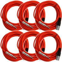 Seismic Audio - Satrxl-M25Red-6Pack - 6 Pack Of 25 Ft Xlr Male To 1/4'' Trs Patch Cable Snake Cords Balanced - Red