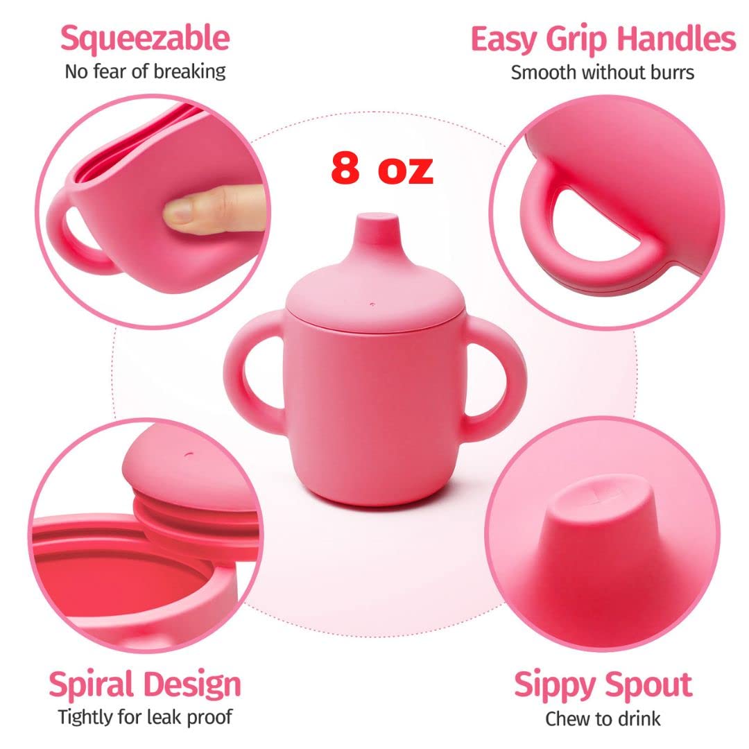 Silikong 8 Oz Silicone No Spill Sippy Cups For Toddlers And Babies Dishwasher And Microwave Safe 2 Pack (Pinkgray)