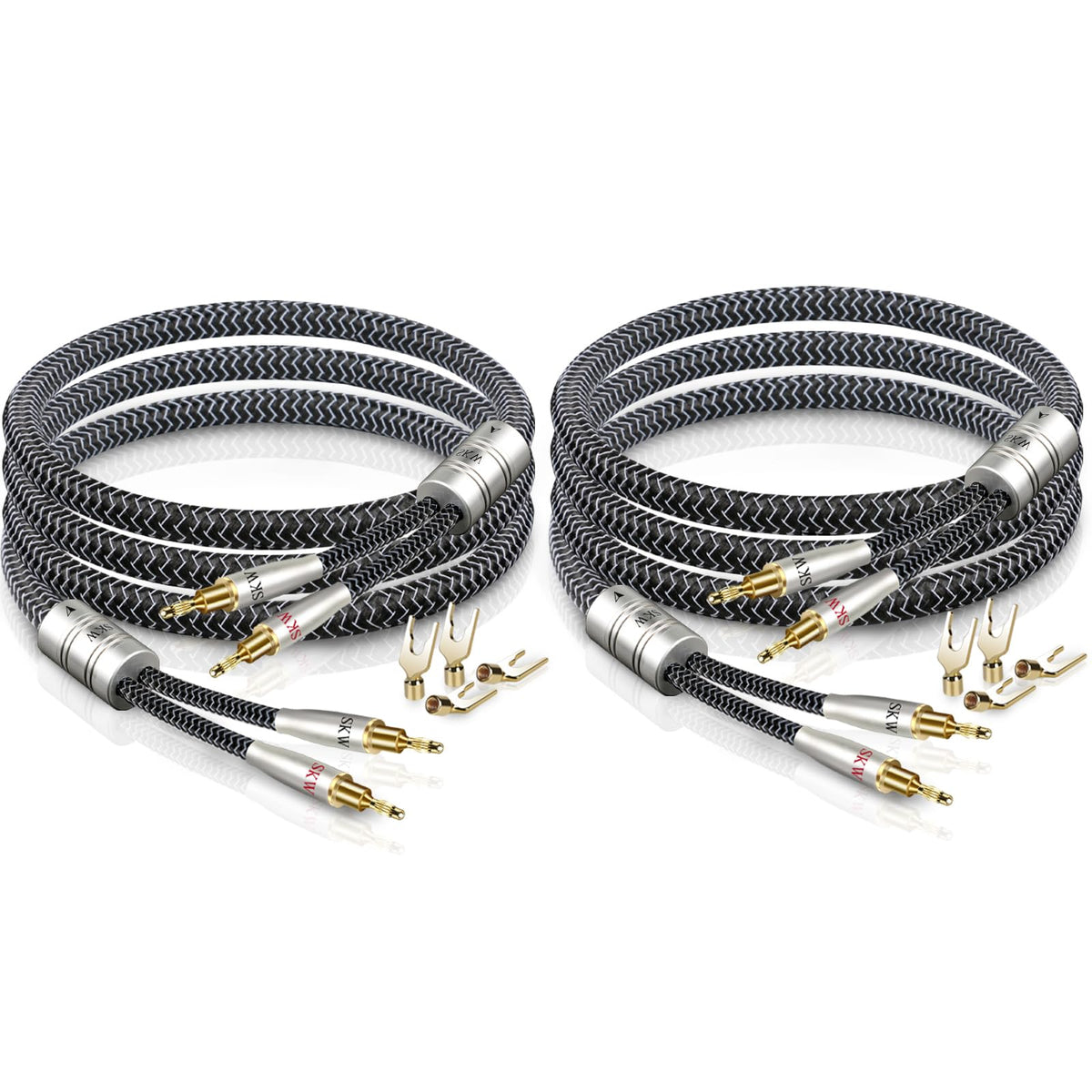 Skw High End Wg Series A Pair Speaker Cable With Convertible Banana And Spade Plugs 5Ft/1.5M (2 Cables)