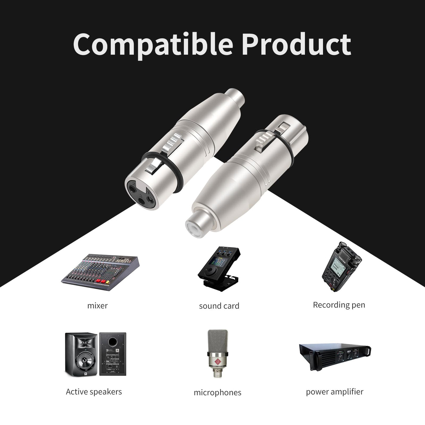 Q: How do I properly use the XLR to RCA adapter?A: To use the adapter, simply plug the female XLR end into your microphone or mixer and connect the RCA end to your amplifier or speaker. Make sure all connections are secure for the best audio quality.
