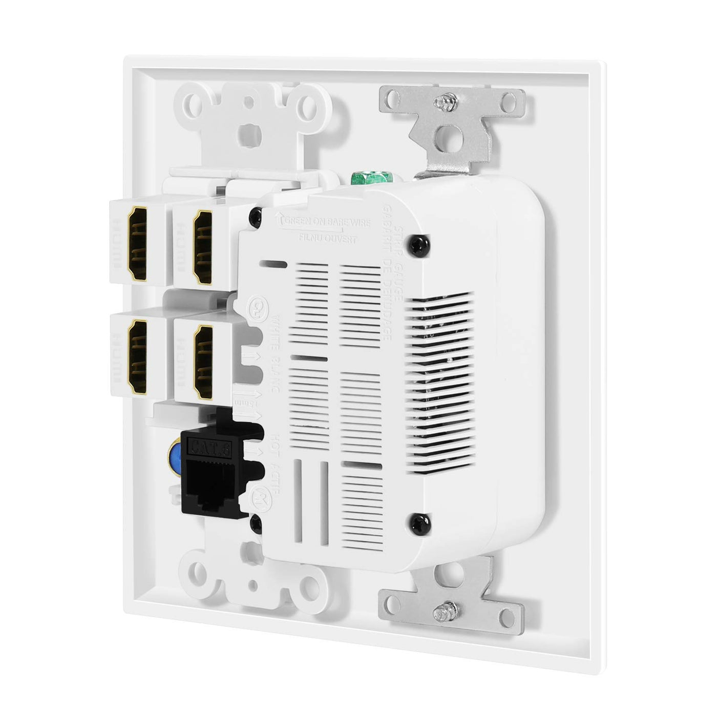 Tnp Multimedia Outlet Box (White) Hdmi Outlet Wall Plate With Usb Charging, Usb Wall Plate Charger And Power Outlet 15A, 4 Hdm