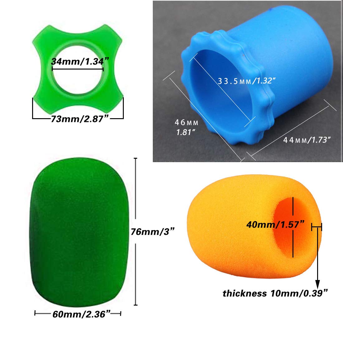 3 Sets Shakeproof & Anti-Rolling Protectors For Wireless Handheld Microphone Color: Orange, Blue, Green Material: Silicone, Sponge Size: Inner Diameter 35Mm, Fits For Most Stage Microphones. --Designed For Normal Sized Handheld Microphone. --With Silicone Ring, Bottom Rod Sleeve Holder, Windscreen Foam Cover, They Are Suitable For Ktv, Dance Ball, Conference Room, News Interviews And On Stage Performance, Etc. --The Rings And Bottoms Can Protect Your Microphone Rolling Down From The Table. --The Mic Covers Are Great For Preventing Pops And Air Interference On The Microphone, These Work On A Wide Variety Of Microphones And Clear Up The Sound Nicely. -- This Kits Can Also Identify Various Stage Microphones From The Mixing Board. Package Included: 3 X Anti-Rolling Rings (Orange, Blue, Green) 3 X Bottom Sleeves (Orange, Blue, Green) 3 X Windscreen (Orange, Blue, Green) (Microphone Not Included).