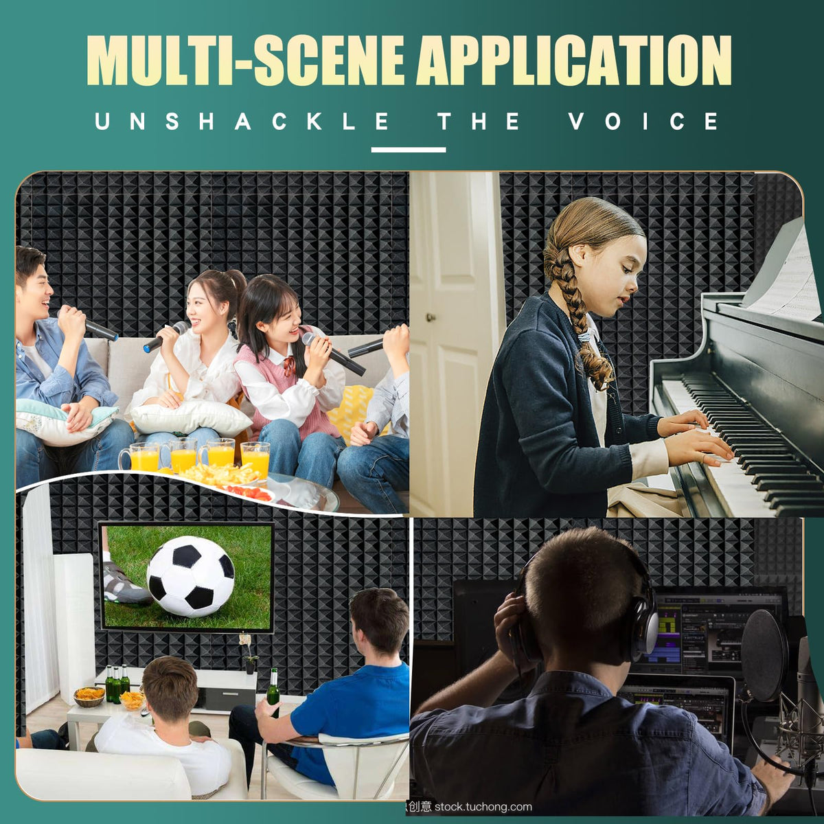 Soundproof Panels For Walls Made Of High Quality Environmentally Polyurethane Foam, Acoustic Panels Feature An Istinct Pyramid 3D Acoustic Design, This Innovative Design Maximizes Sound Absorption For A Premium Acoustic Experience,No Health Risks, Safe To Use.