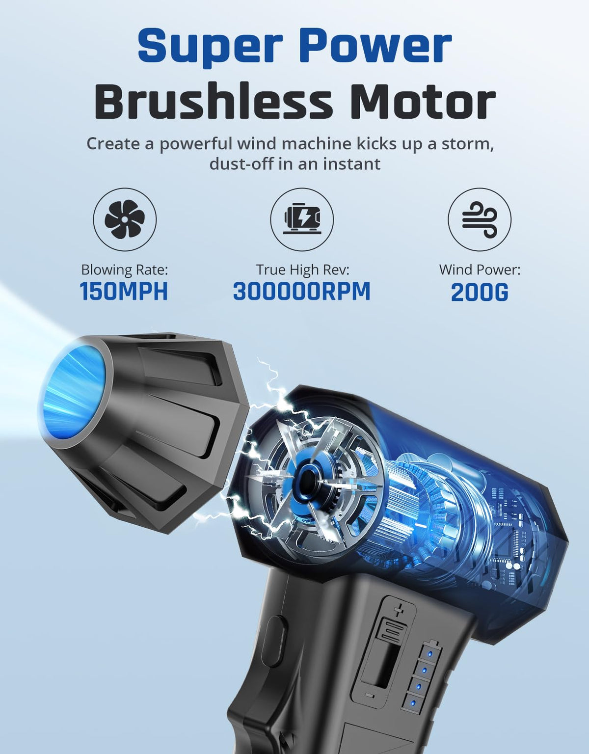 Compressed Air Duster- 300000Rpm Super Power Electric Air Duster, Variable Wind Speed Max 200G Mini Dust Blower For Computer, Keyboard, Outdoor, House And Car, Rechargeable Canned Air Replace Air Can