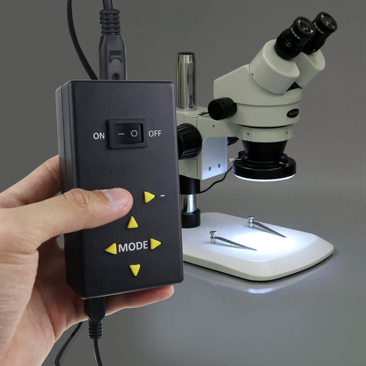 Features: Inner Diameter Is Adjustable To Match Various Microscopes And Camera Features 4 Zone/Mode Controlled Separately And Lots Of Angle/Zone Combinations Provides Adjustable Brightness For Flexibility Ring Light Are Covered To Add Extra Protection To The Led Bulbs Installing To Microscope And Camera Is Very Quick And Easy To Use Adjustable Screws To Keep Attachment In Place Provides Cool, Flare Free And Focused Shadow-Free Illumination Low Temperature To Maximize The Operation &Amp; User'S Comfort, Even For A Long Period Specifications: Light Control : 4 Mode Light Control, Each Mode Has An Adjustable Brightness Outer Diameter : 98Mm Inner Diameter : 61Mm Wattage : 4.5W Input Voltage : 90V-264V Output Voltage : Dc12V Brightness Adjust : 0-100% Working Distance : 40-250Mm Quantity Of Led : 144 Pieces Brightness : 20000Lux At Height Of 100Mm Color Of Light : 6400K Controller'S Dimension : 110Mm X 60Mm X 32Mm Adjustable Brightness Set Includes: 1 X 144 Led Ring Light 1 X Main Controller 1 X Power Cord Standard Packaging Box