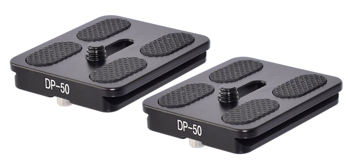 Q: What materials are used in the construction of the DP-50 QR plates?A: The DP-50 QR plates are made from durable aluminum, ensuring a lightweight yet sturdy design that can withstand regular use while providing a stable platform for your camera.