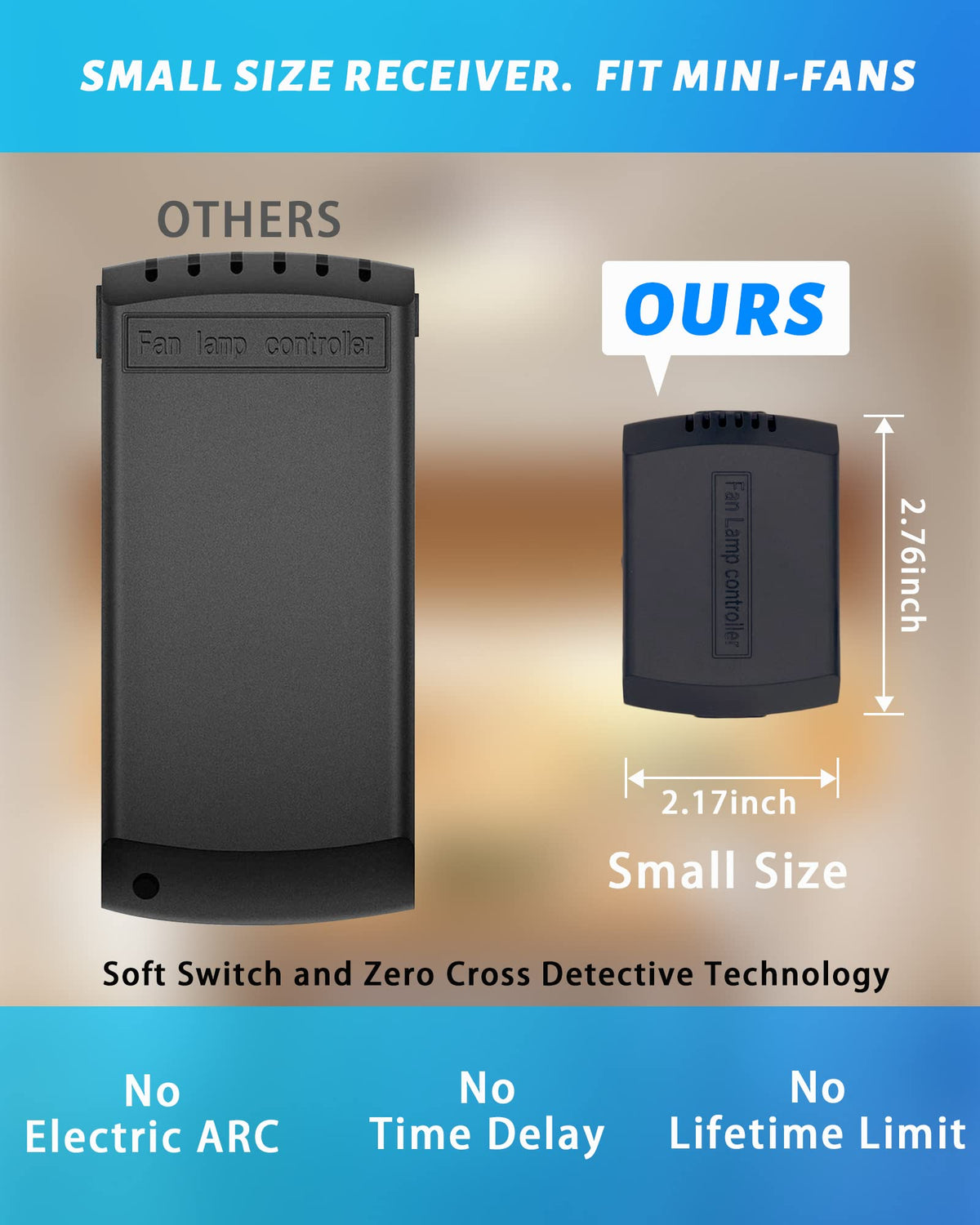 Important Notes: ???1. Please Check The Dimension Of Receiver Carefully To Make Sure There Is Enough Space In The Canopy Of Your Fan To Install The Receiver. ?2. No Mechanical Relay, No Electric Arc, No Inrush Current, Zero-Cross Detection Technology ?3. It Can Only Turn Light On/Off, No Dimming; And Turn Fan To Low/ Medium/ High Speed. ?4. The Receiver Does Not Have The Function Of Reverse. ?5.Beep Sound Can Be Turned On Or Turned Off Through Remote In Anytime. ? Product Specifications: ??Operating Voltage: 110V-220V ??Max Load Power: 145W / 10A For Ceiling Fan; 150W / 10A For Led Light ??Standby Power Consumption: