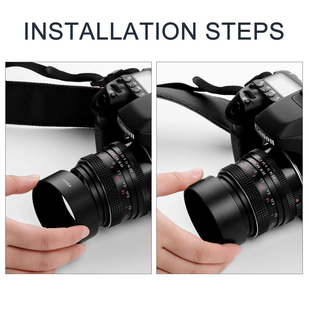 Q: Is this lens hood compatible with my camera?A: This 40.5mm screw-in lens hood is compatible with all lenses that have a 40.5mm thread size. Please verify your camera's lens thread size, which is typically marked on the lens barrel.