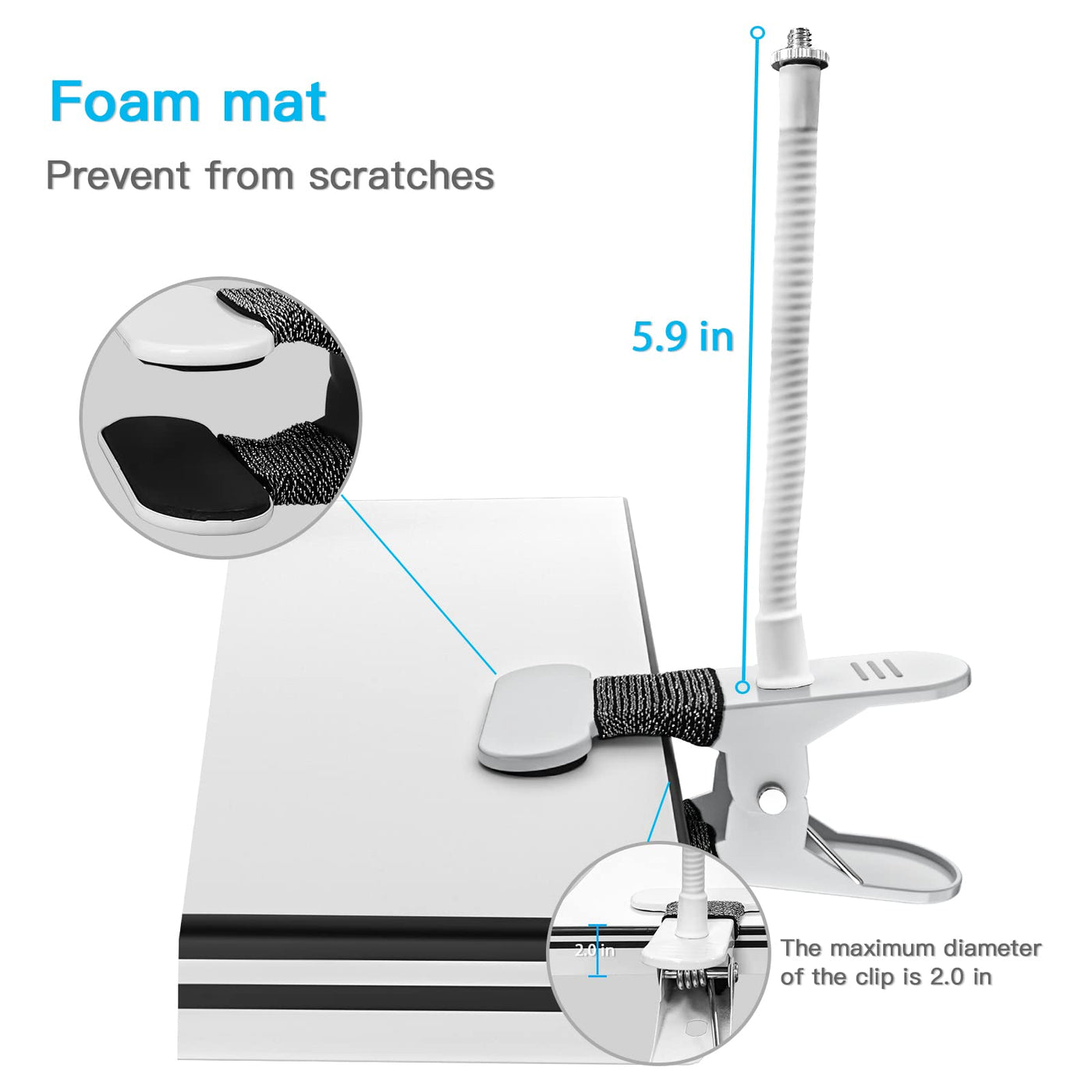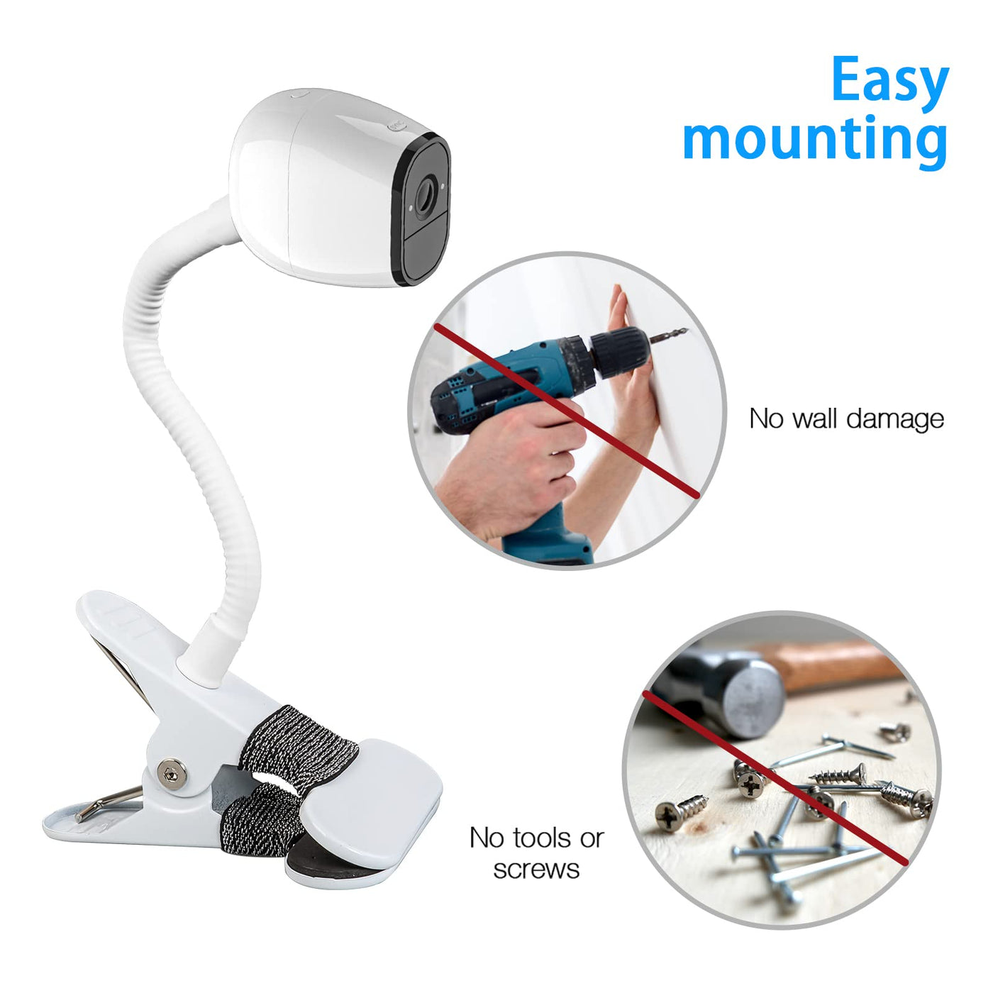 Adjustable Gooseneck Clamp Mount For Eufy Cameras, Mounting Bracket Compatible With Arlo Pro 5S/Pro 4/Pro 3/Pro 2/Essential And More 1/4'' Camera(No Drill,White, 1 Pack)